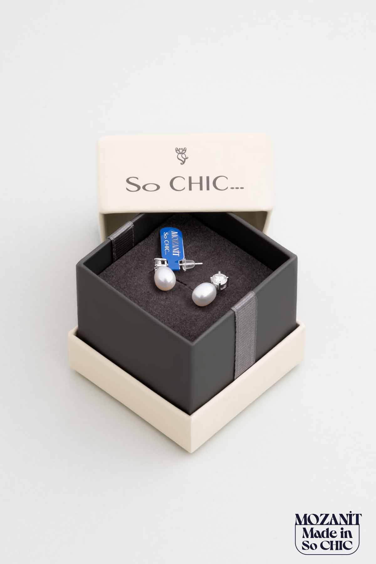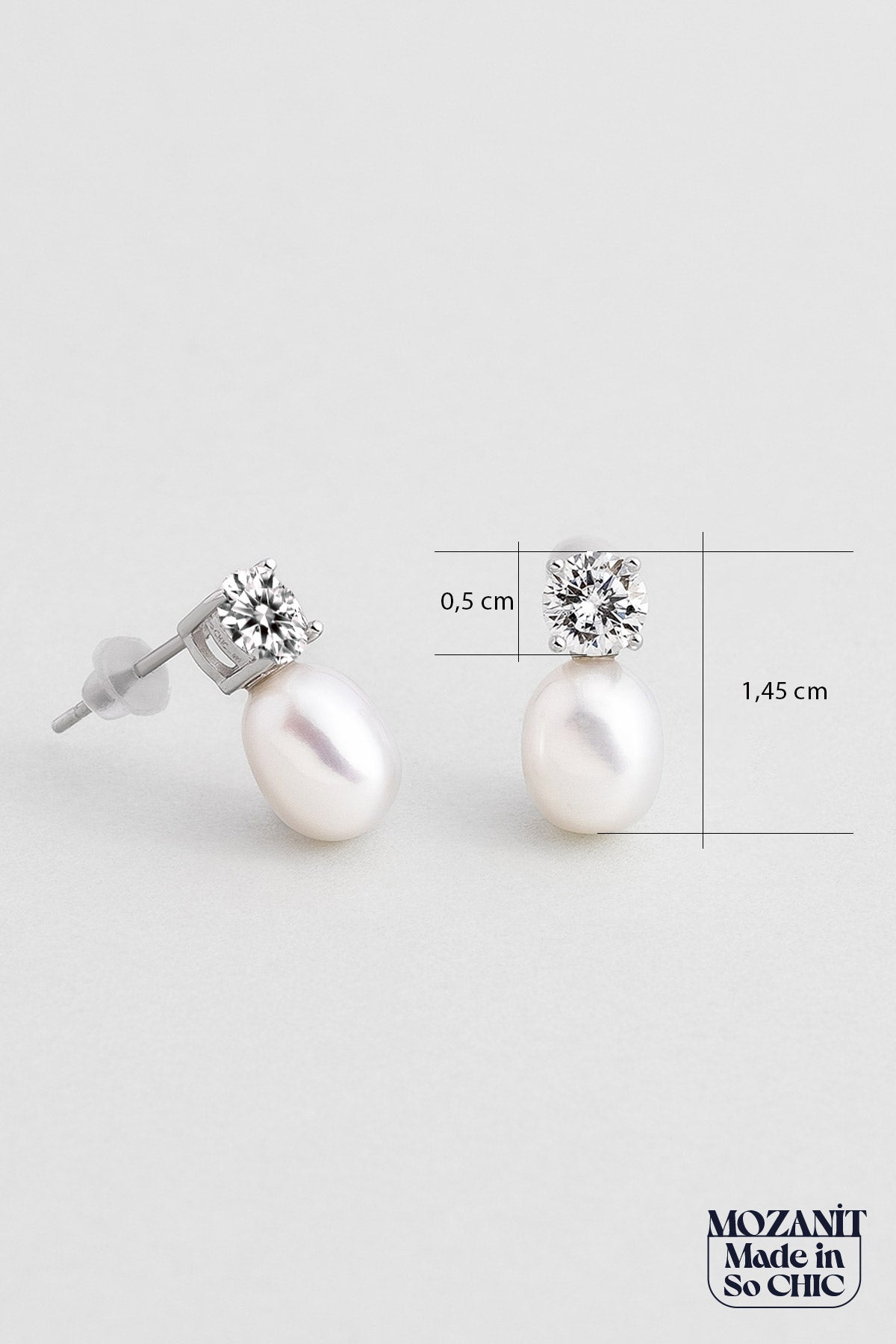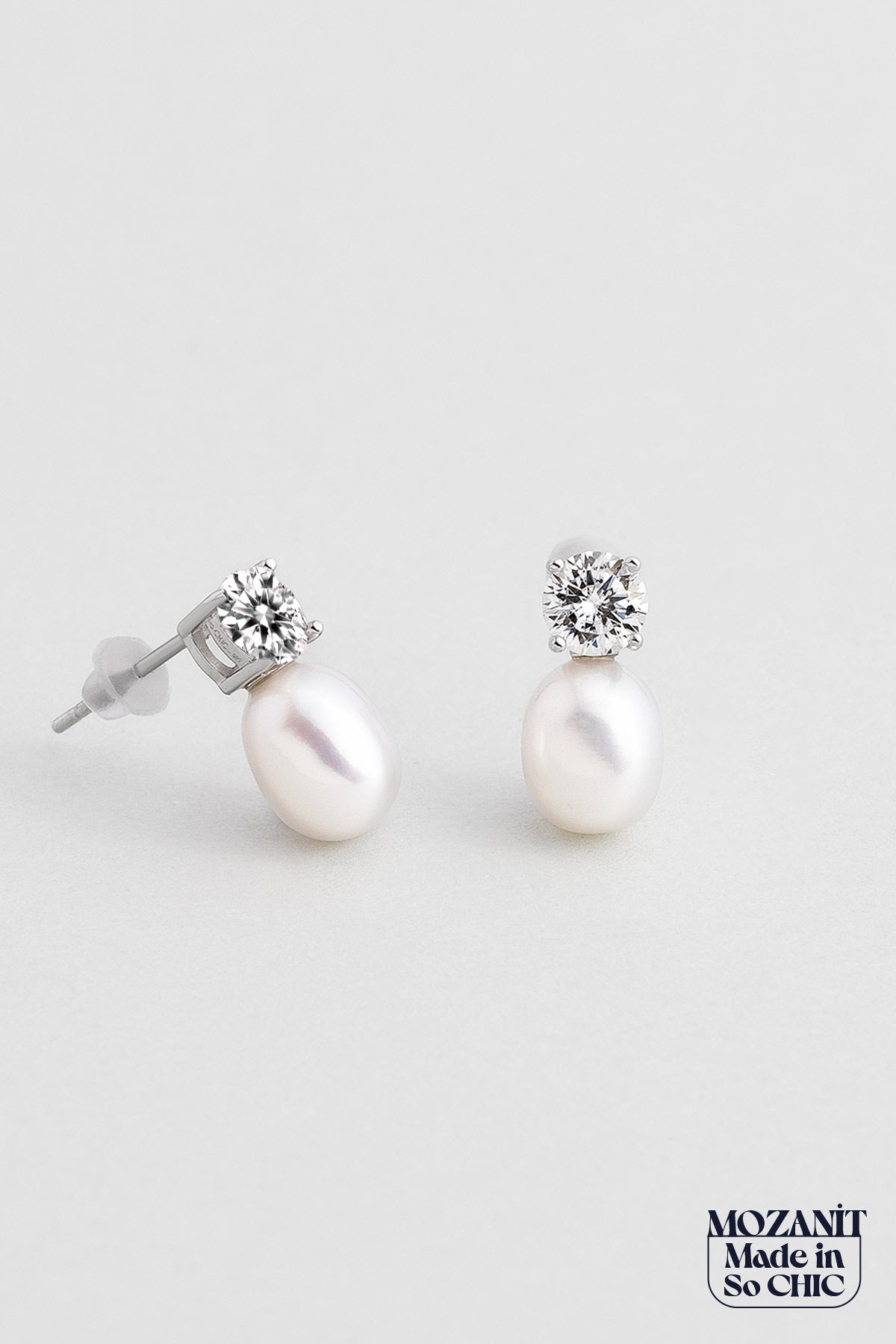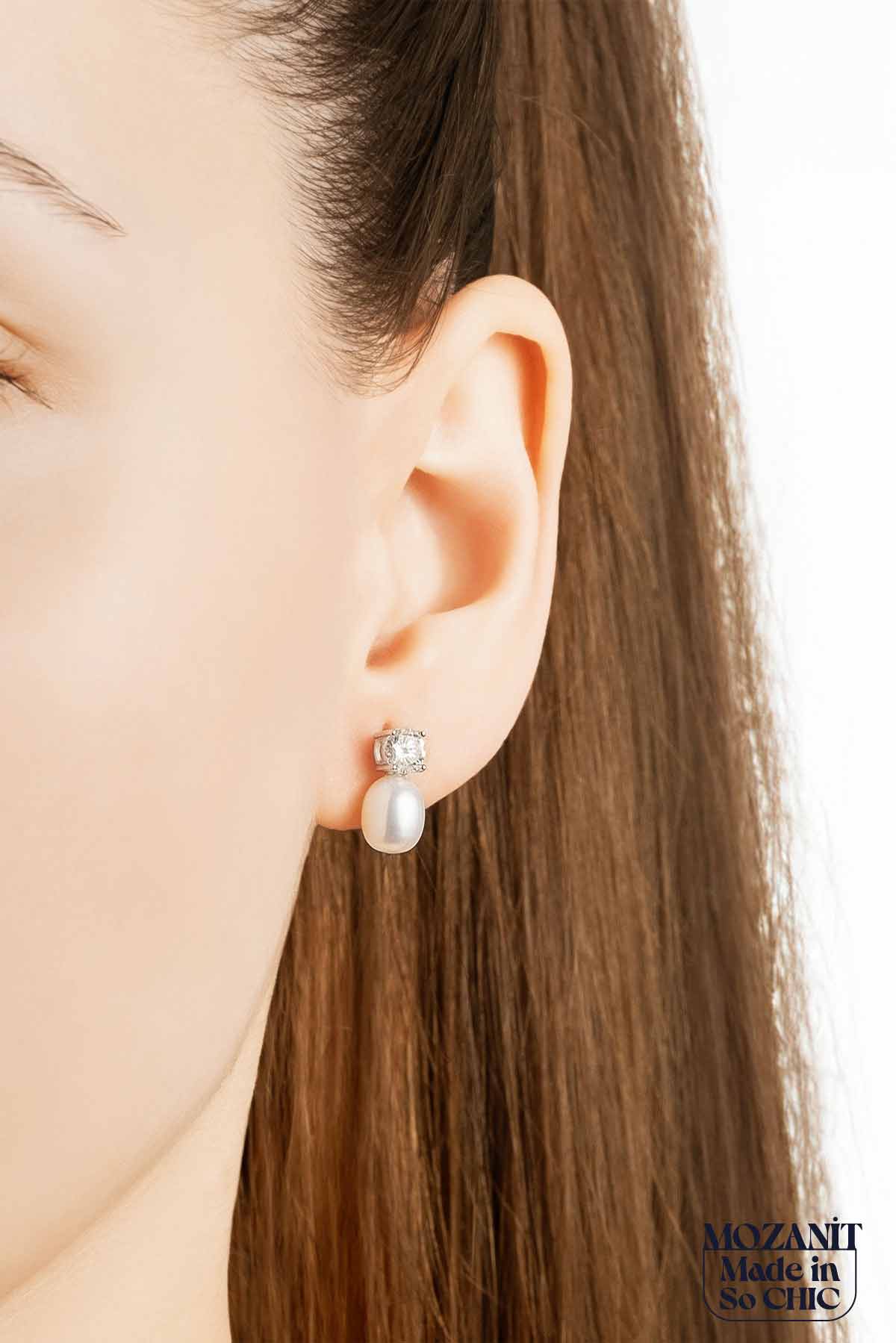 Mozanit Rüyası 18 Ayar Beyaz Altın Kaplama Inci Taşlı Gümüş Küpe 5170416299