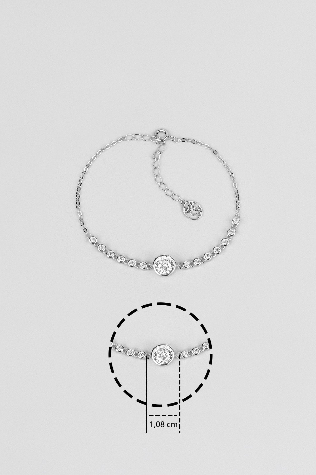 Mozanit Tasarımı 18 Ayar Beyaz Altın Kaplama 19 Cm Gümüş Bileklik 5199110199