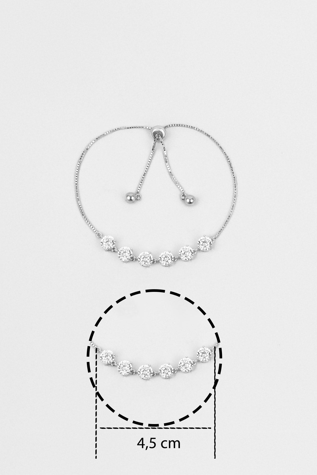 Mozanit Yolu 18 Ayar Beyaz Altın Kaplama Ayarlanabilir Gümüş Bileklik 5199100199