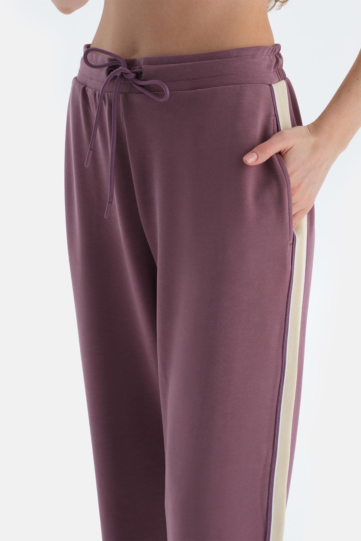 Mürdüm Kadın Modal Karışımlı Yan Şerit Detaylı Pantolon