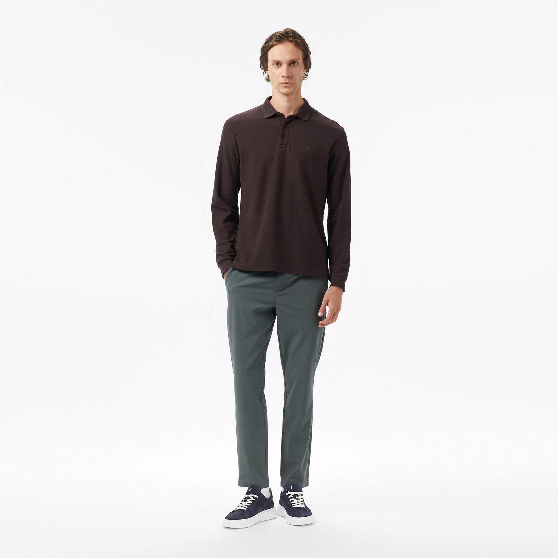 Nautica Erkek Kahverengi Classic Fit Uzun Kollu Polo Yaka T-shirt