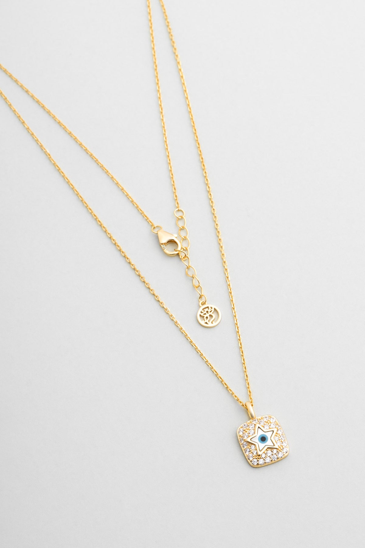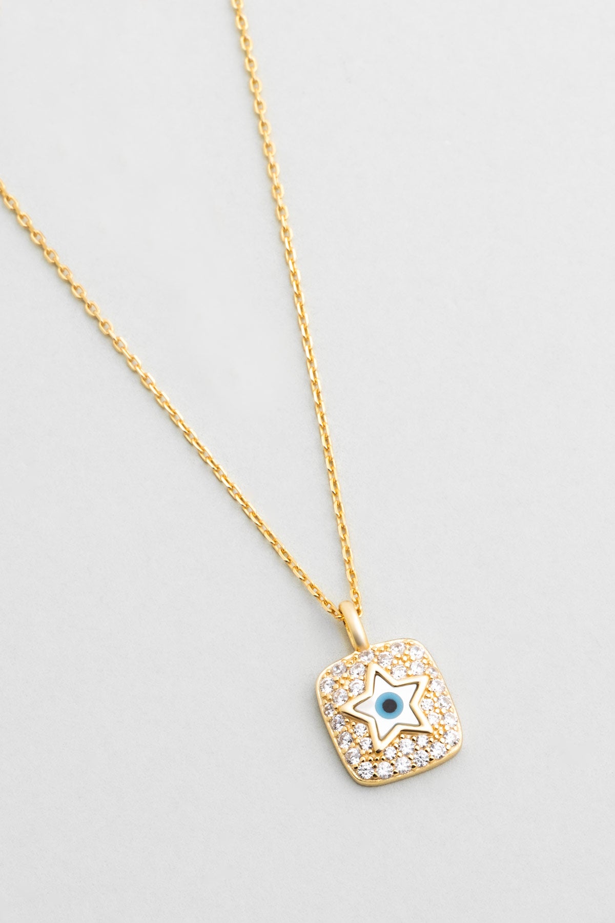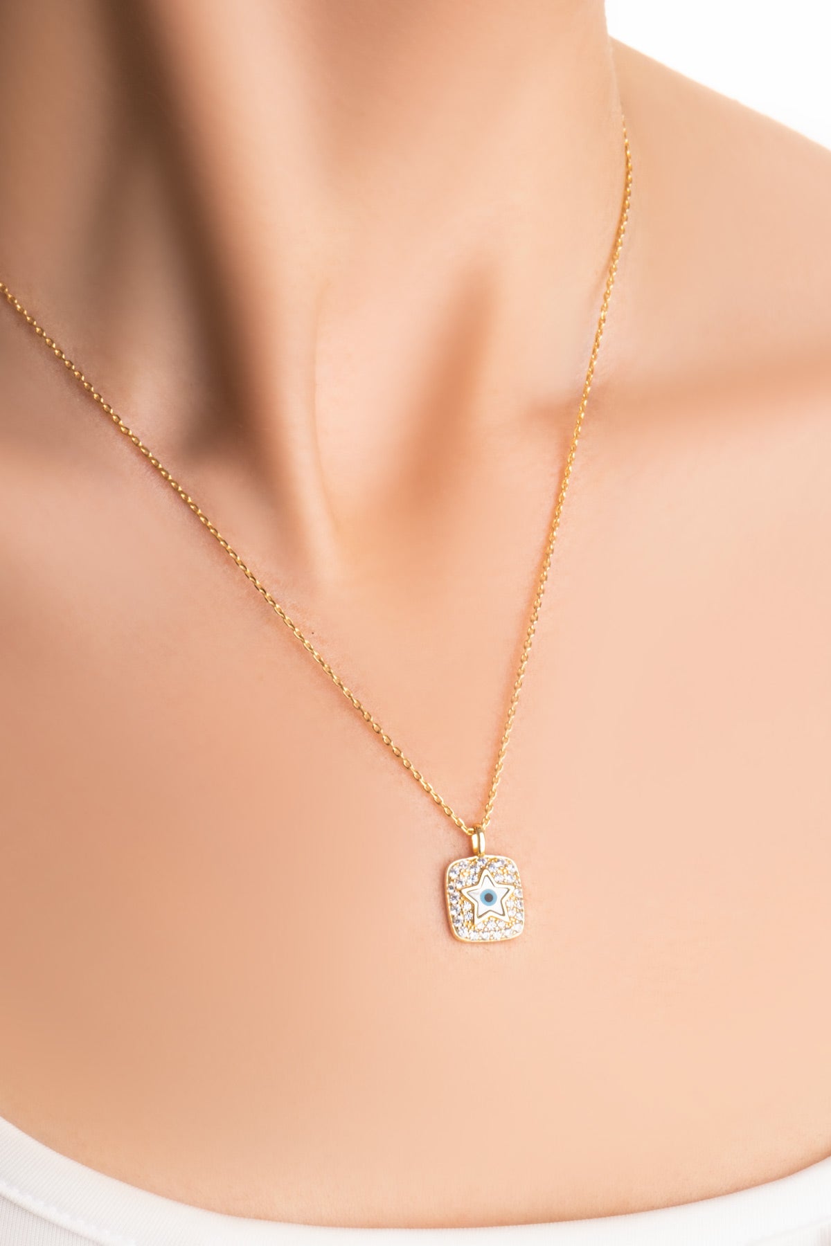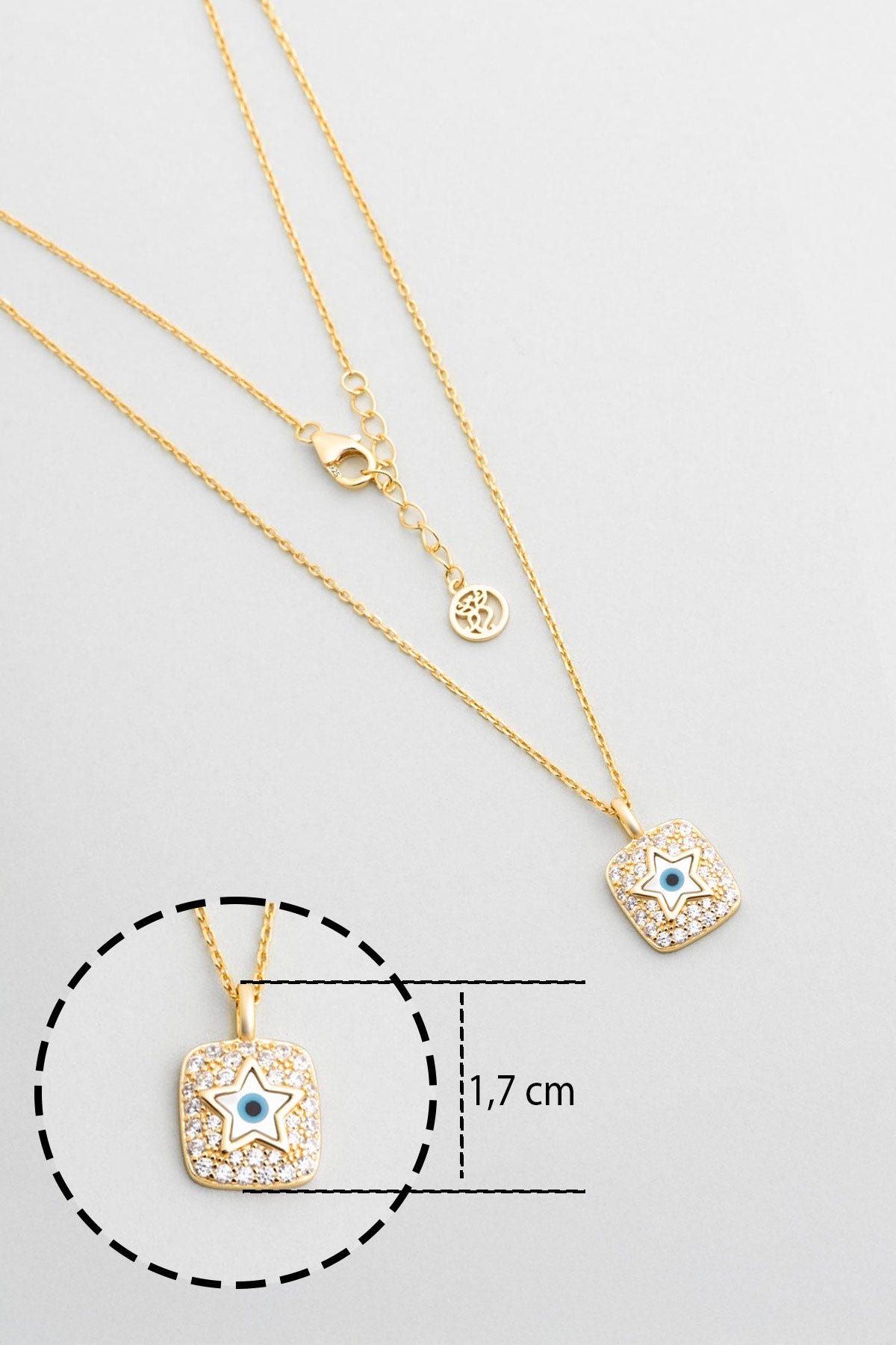 Nazar Yıldızı 18 Ayar Sarı Altın Kaplama 45 Cm Gümüş Kolye 5208880144