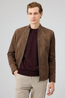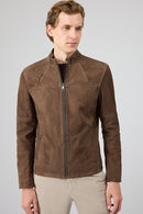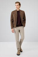 Neymar Erkek Kestane Hakim Yaka Slim-fit Süet Deri Ceket