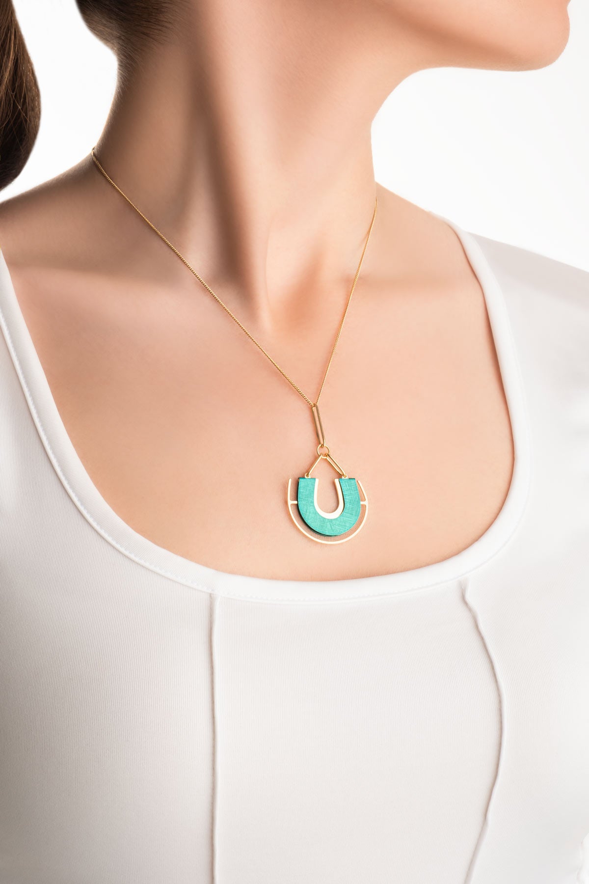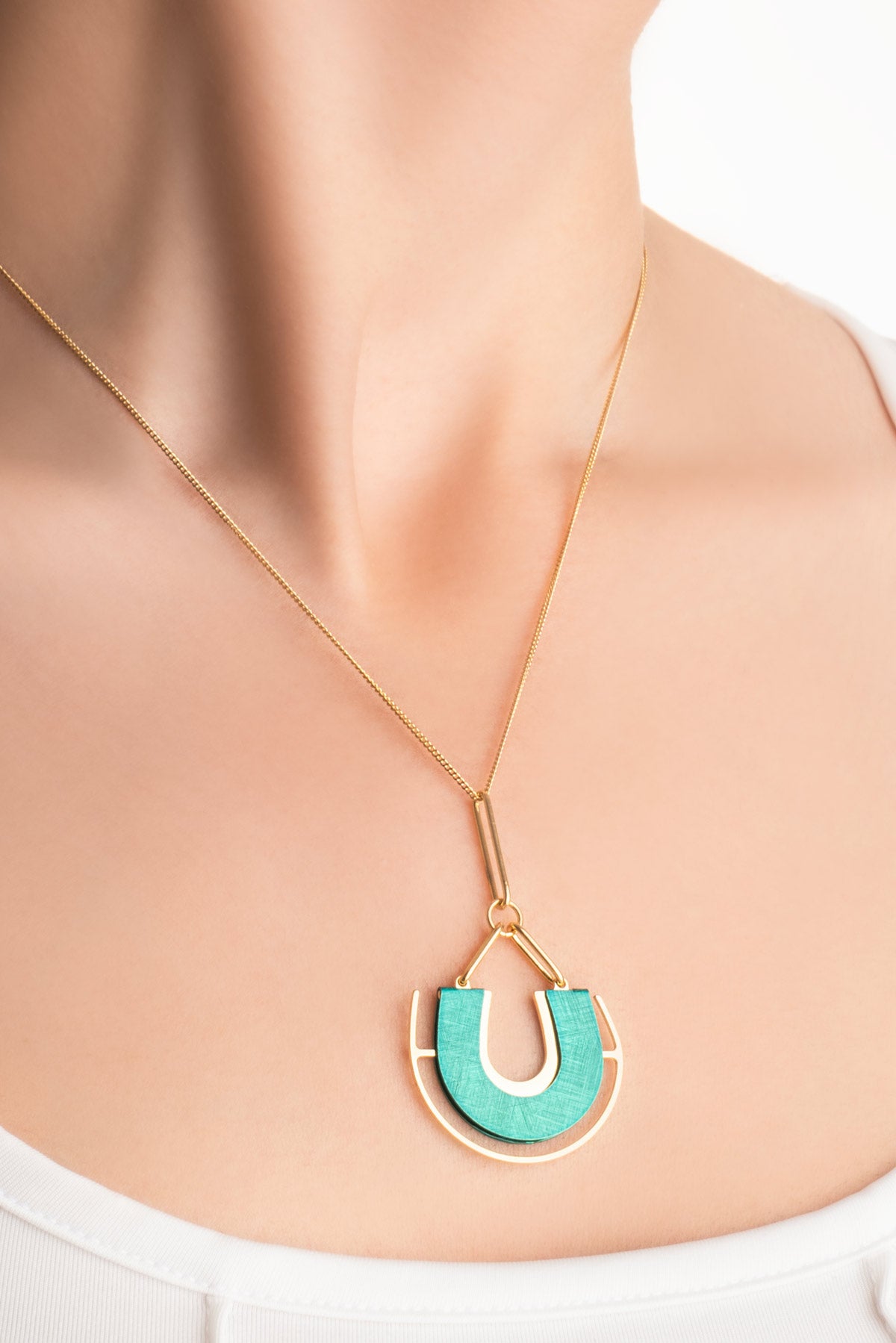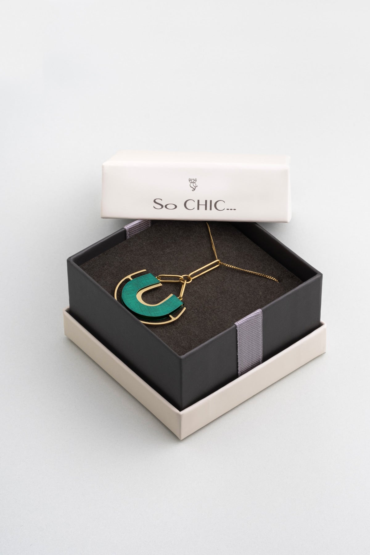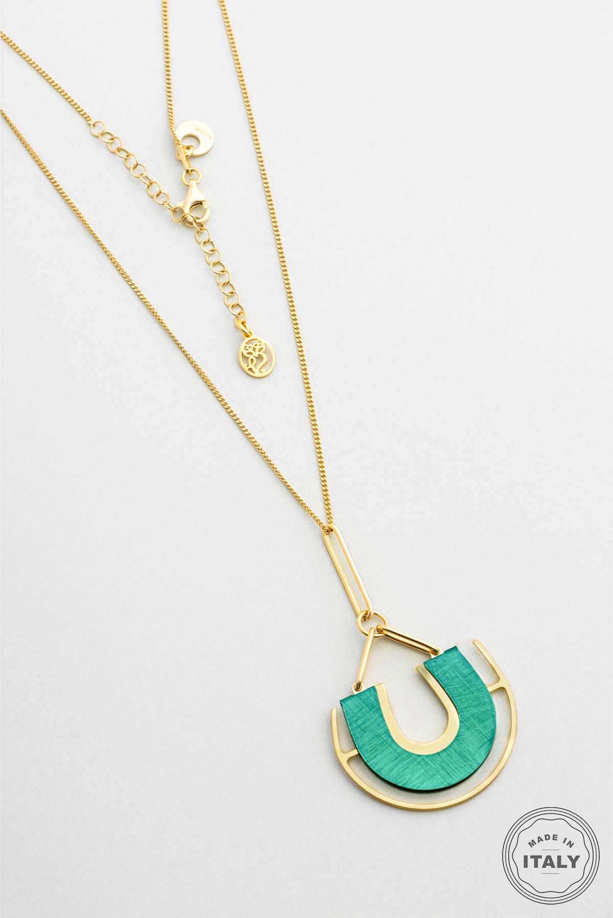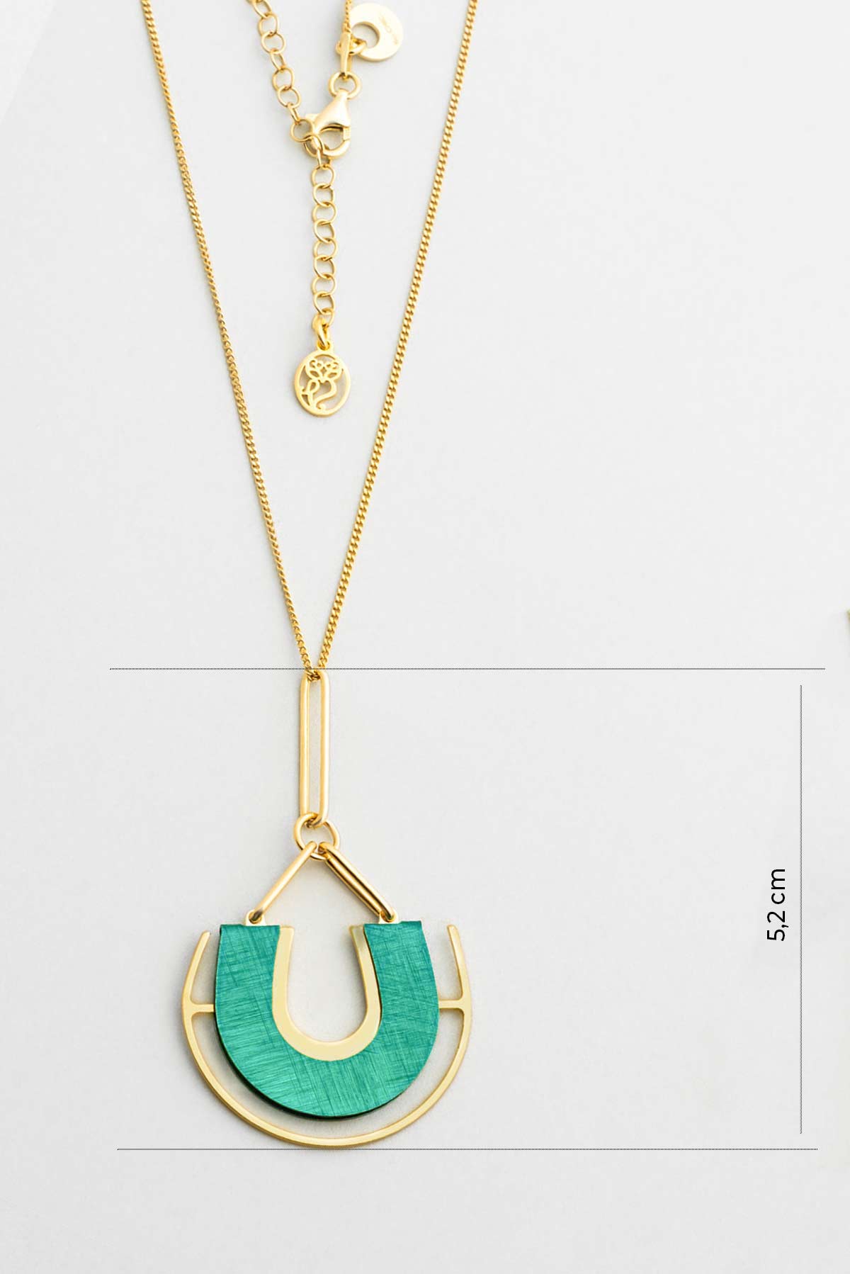 Nil Yeşili 18 Ayar Sarı Altın Kaplama 45 Cm Gümüş Tasarım Kolye 07307800444