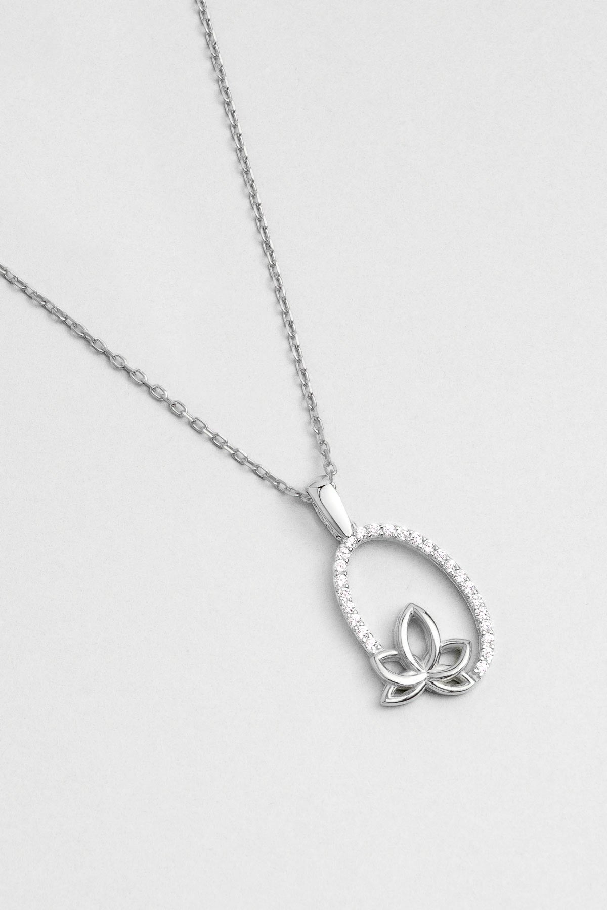 Nilüfer 18 Ayar Beyaz Altın Kaplama 45 Cm Gümüş Kolye 1113520199