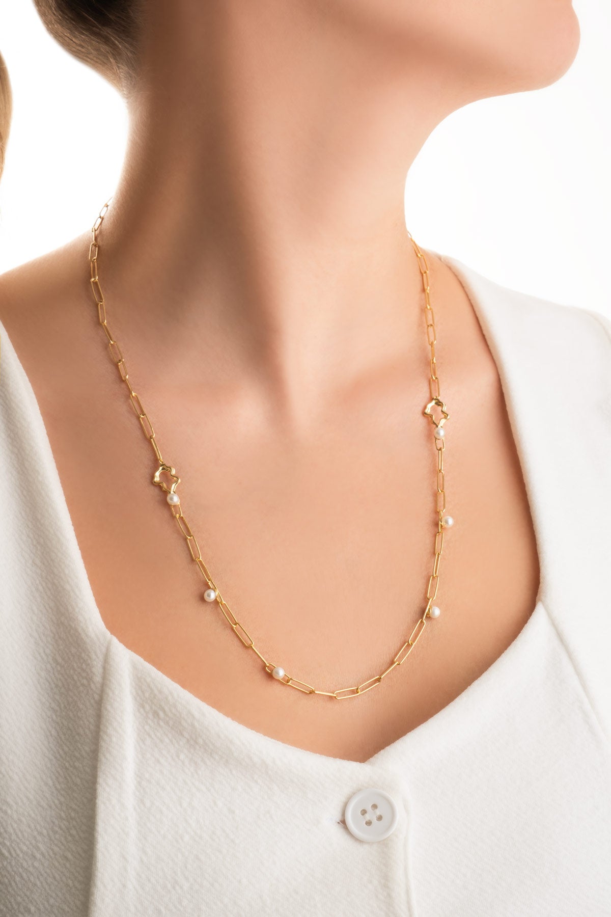 Ophelia 18 Ayar Sarı Altın Kaplama 64 Cm Gümüş Inci Kolye 07316206244