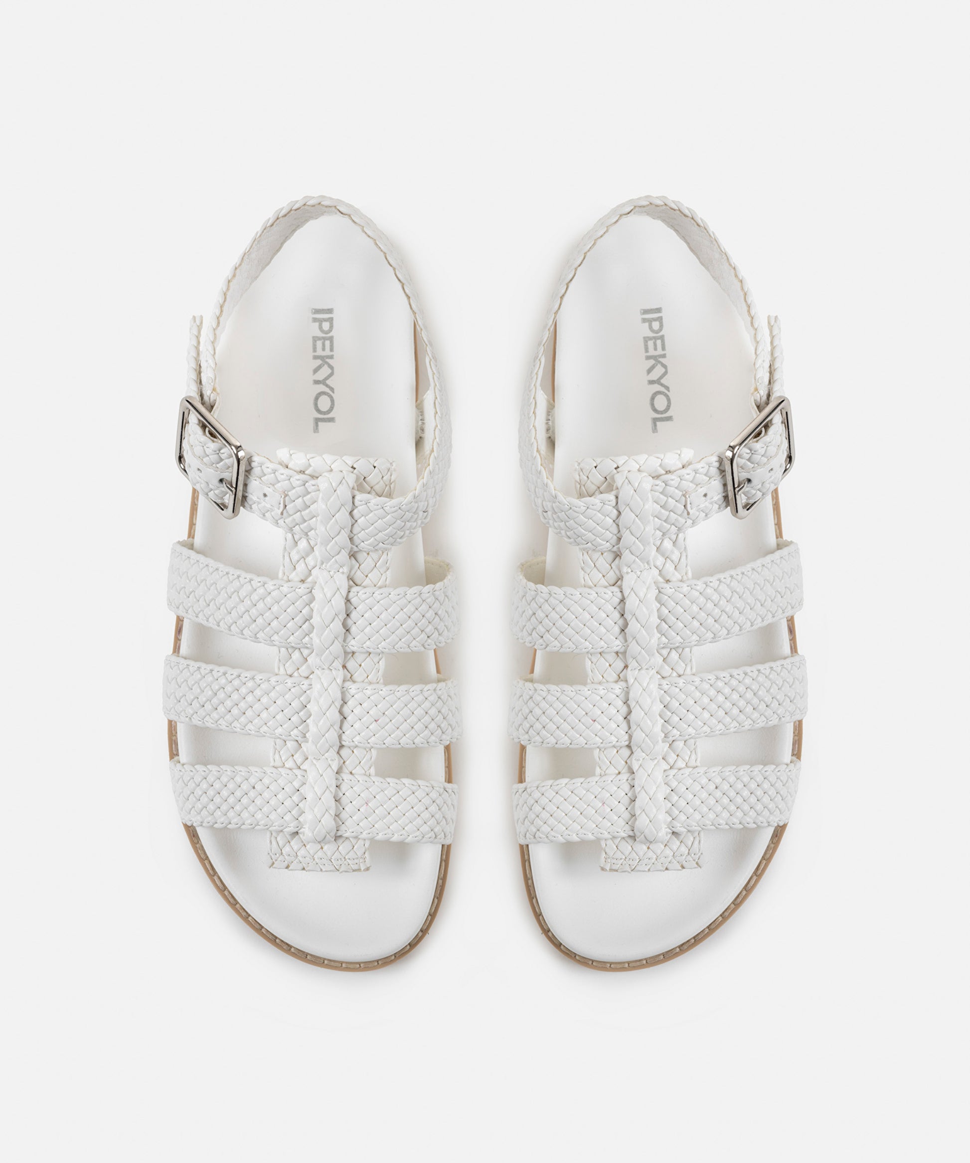 Beyaz Örgü dokulu çok bantlı sandalet IS1250033013002 ile tarzınızı tamamlayacaksınız. IPEKYOL tarzına sahip olmak için hemen tıklayın!