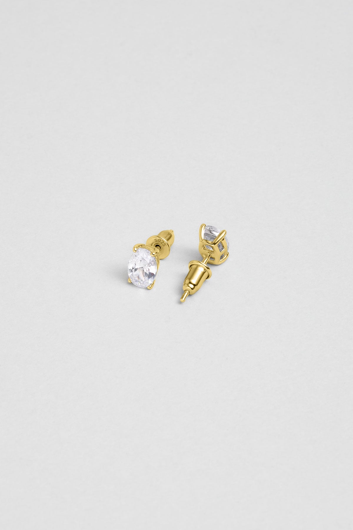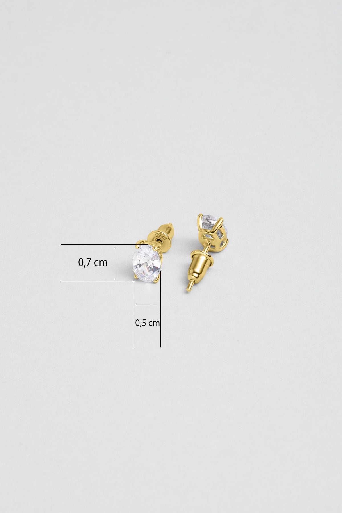 Oval Kesim 18 Ayar Sarı Altın Kaplama Gümüş Tektaş Küpe 5016270144