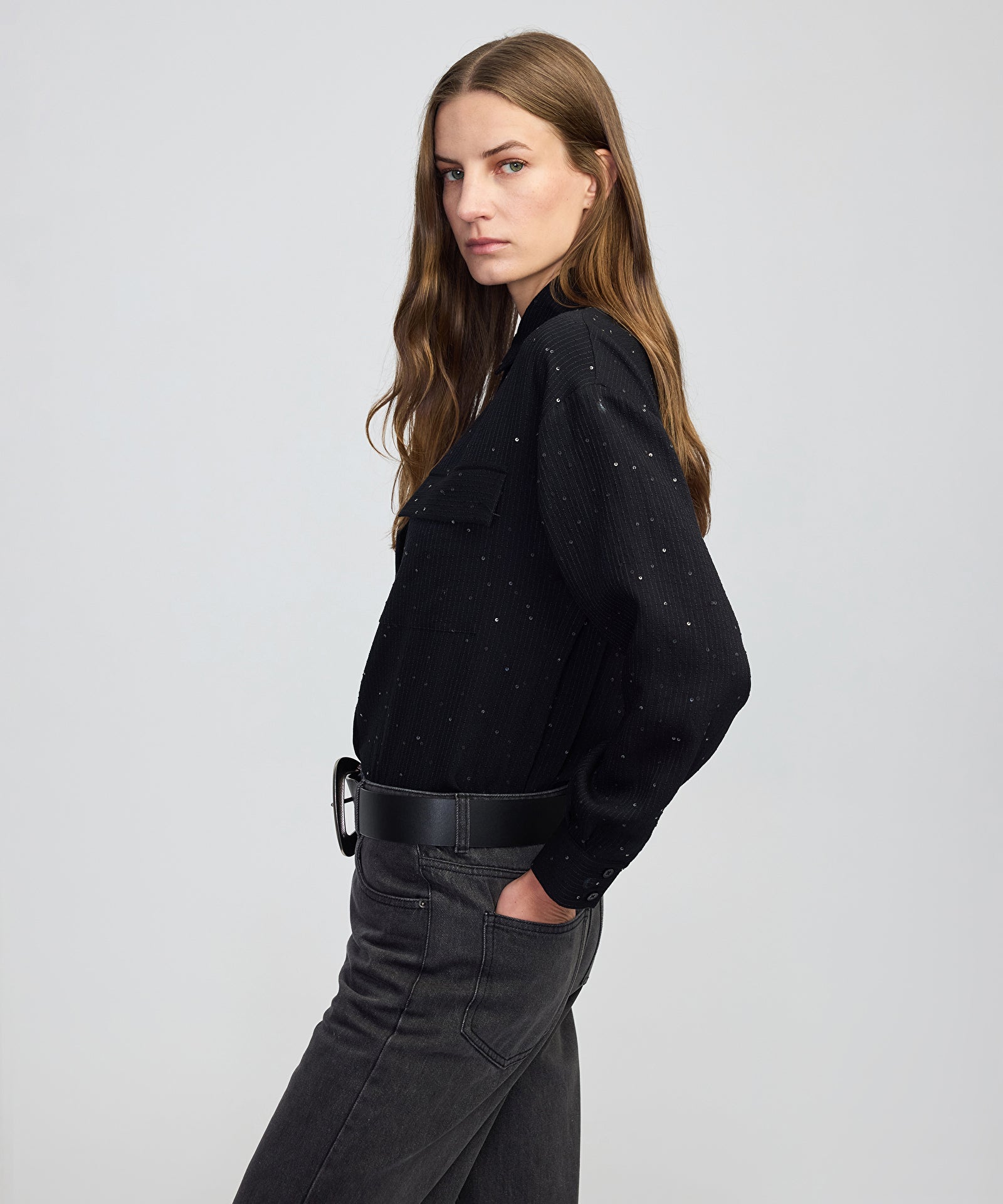 Siyah Payetli çizgi desen gömlek IW6250025141001 ile tarzınızı tamamlayacaksınız. IPEKYOL tarzına sahip olmak için hemen tıklayın!