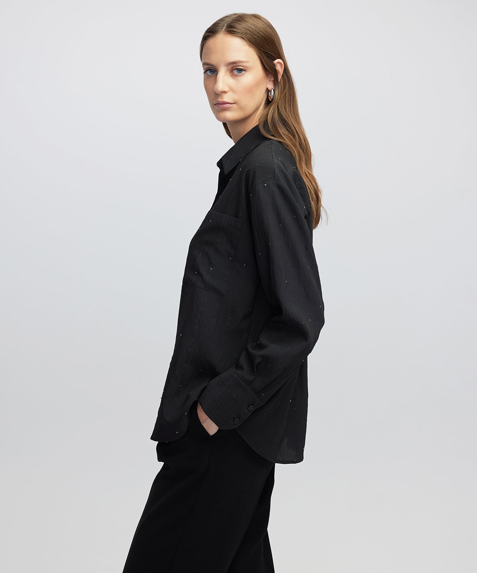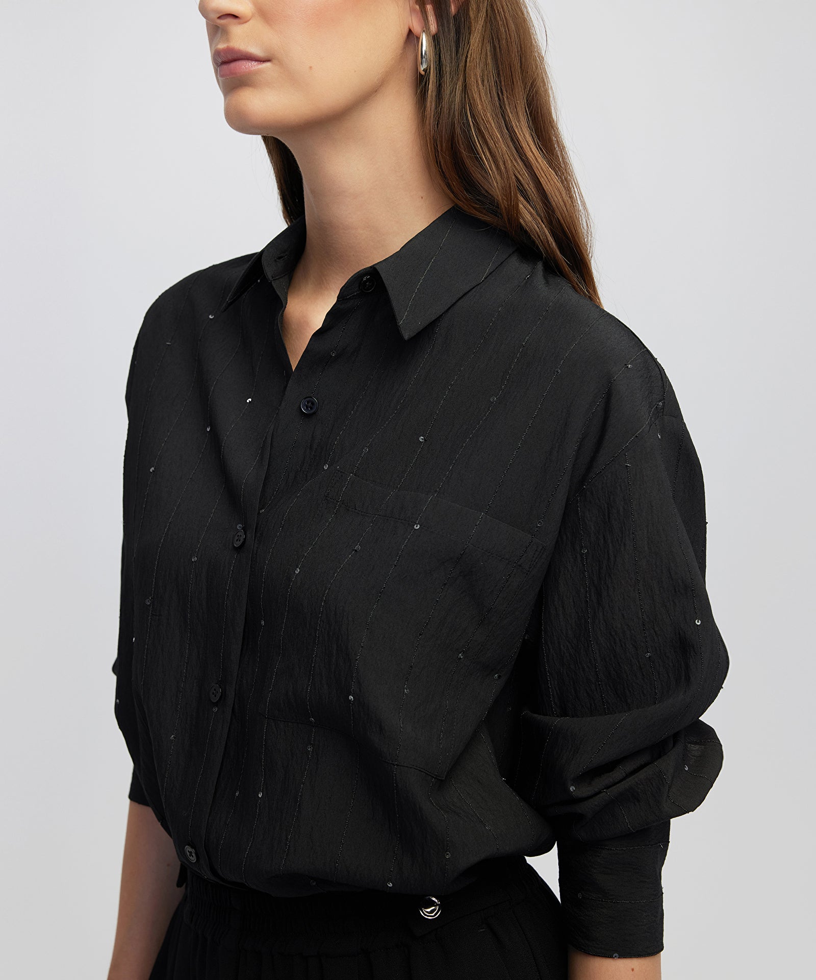 Siyah Payetli gömlek IW6250025103001 ile tarzınızı tamamlayacaksınız. IPEKYOL tarzına sahip olmak için hemen tıklayın!