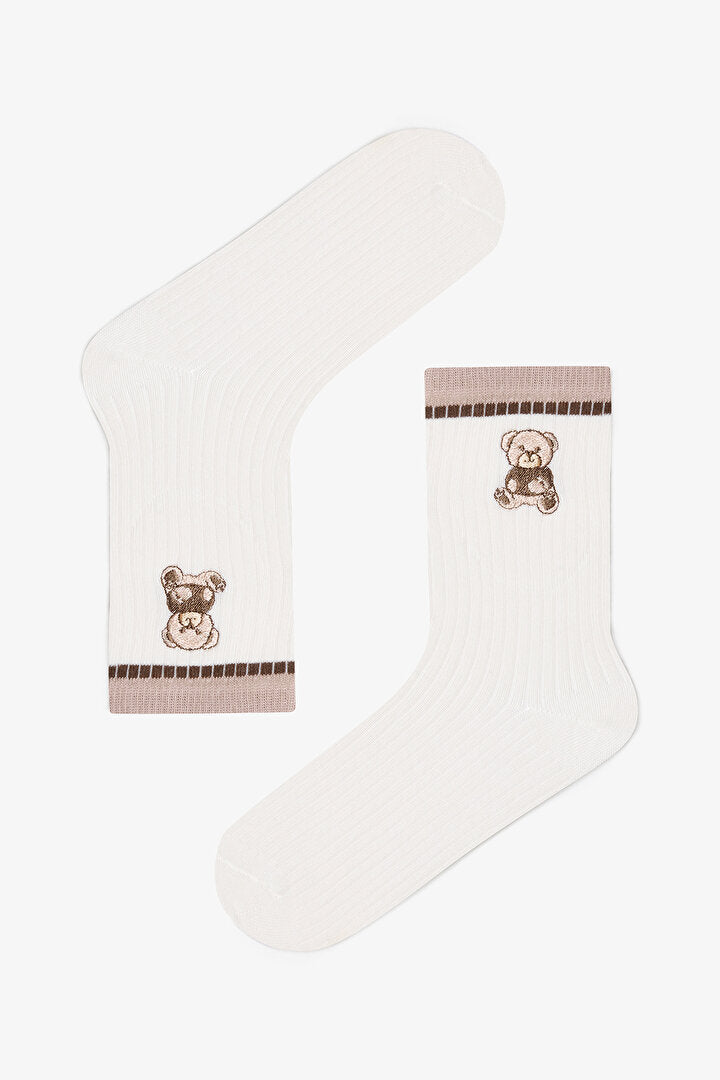 2 Çift Ayı Nakışlı Ve Çizgili Soket Çorap