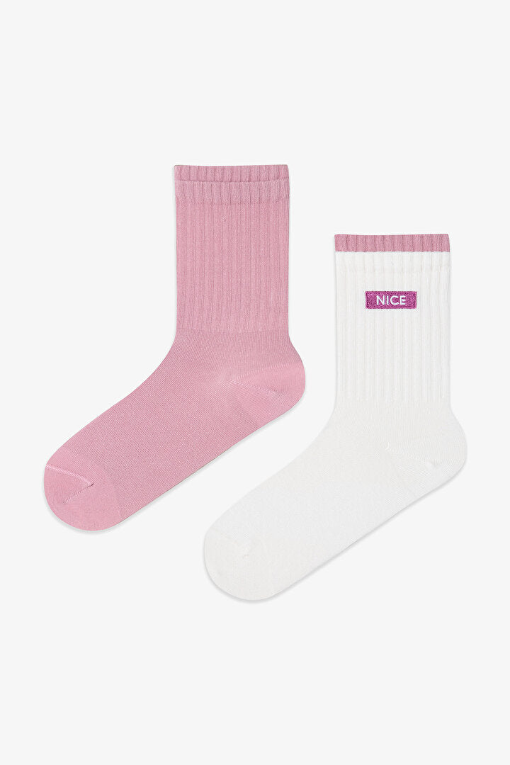 Nice Patch 2'li Soket Çorap, pembe ve beyaz renklere sahip çorap setidir. Üzerinde yer alan slogan deseni, çoraplarına eğlenceli bir hava katar. Bilek kısımları çift renkli tasarımıyla farklılık yaratır. Patch desenli bu soket çoraplar, her pakette 2 çift olarak sunulur. Koleksiyonuna renk ve stil katmak için bu çorapları hemen satın al!