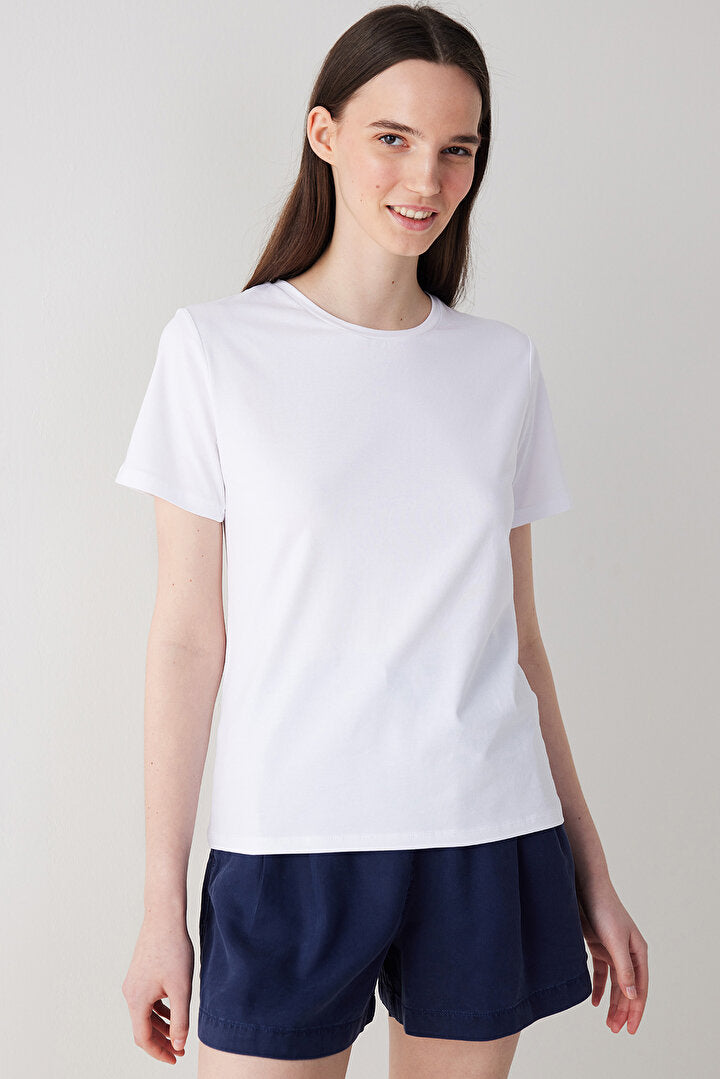 Pamuklu Beyaz Kısa Kollu Basic Tişört Phdwe0na23sk-wt2 - Beyaz - Penti