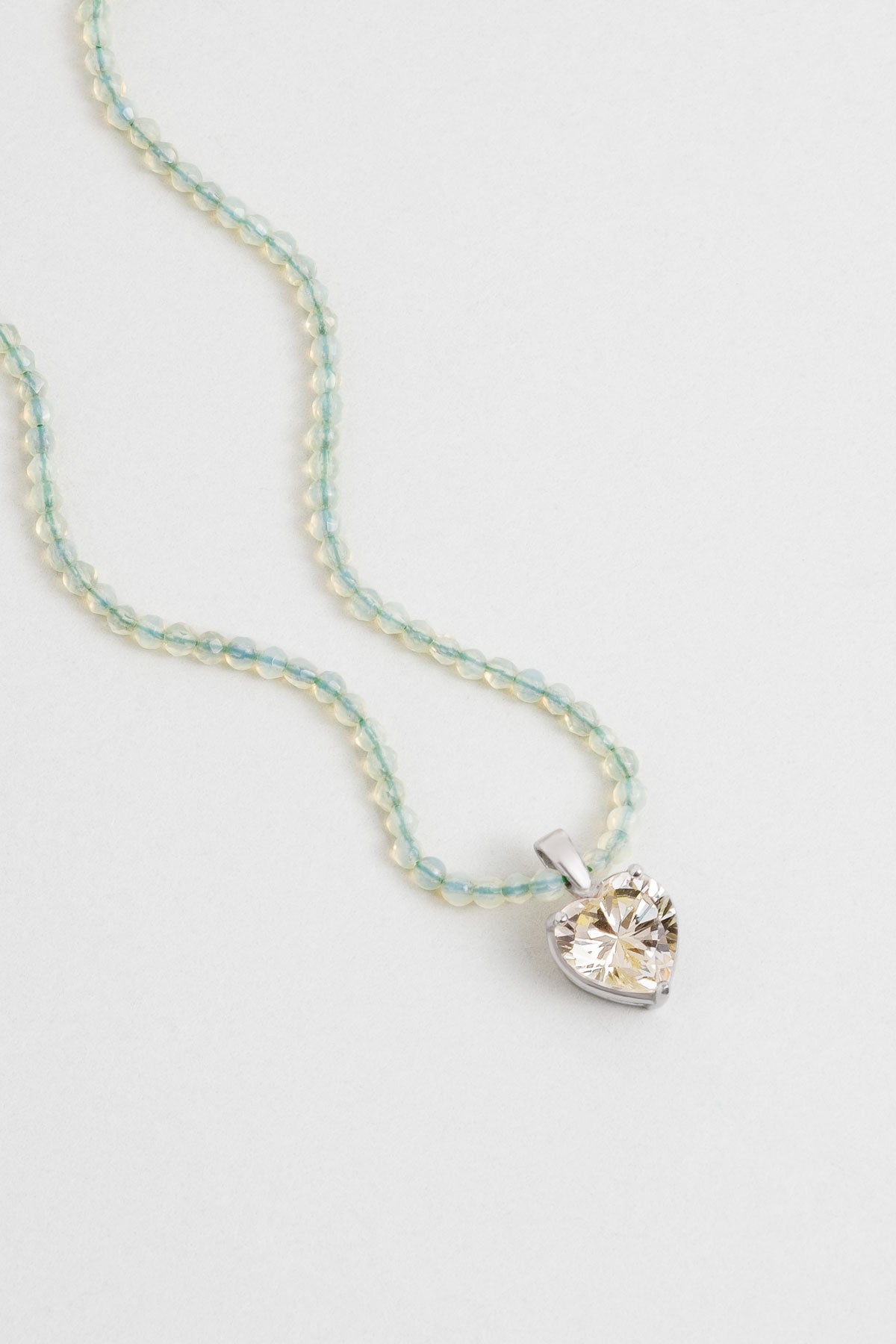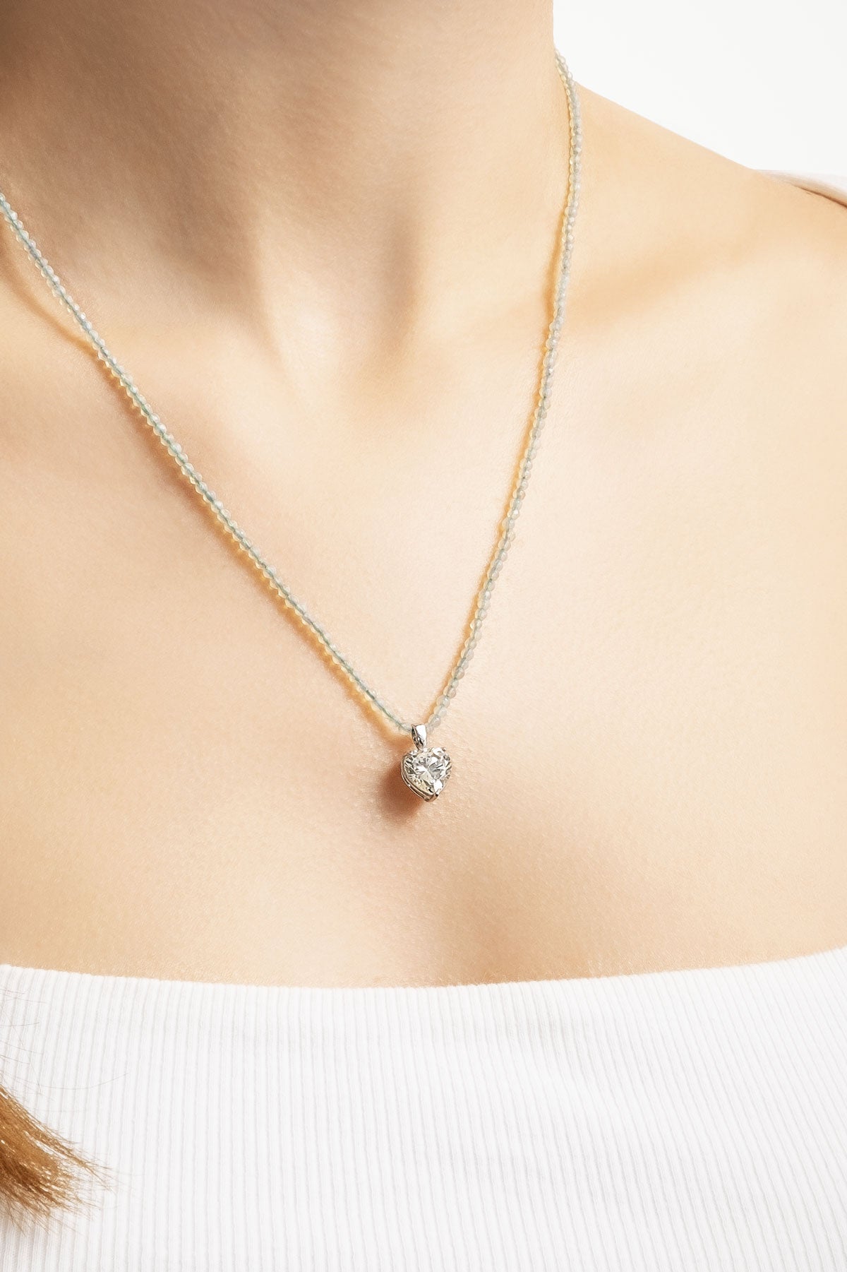 Prehnit Kalp 18 Ayar Beyaz Altın Kaplama 45 Cm Gümüş Kolye 07309049199