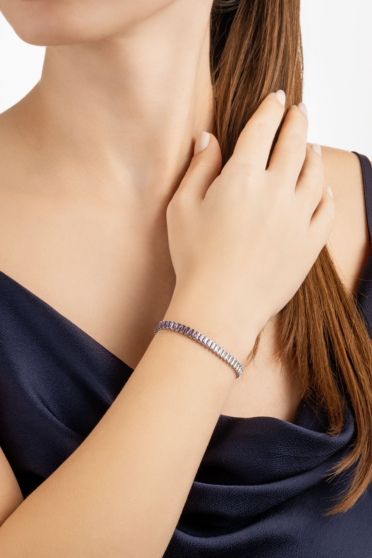 Renkli Baget 18 Ayar Beyaz Altın Kaplama Ayarlanabilir Gümüş Bileklik 5172178999