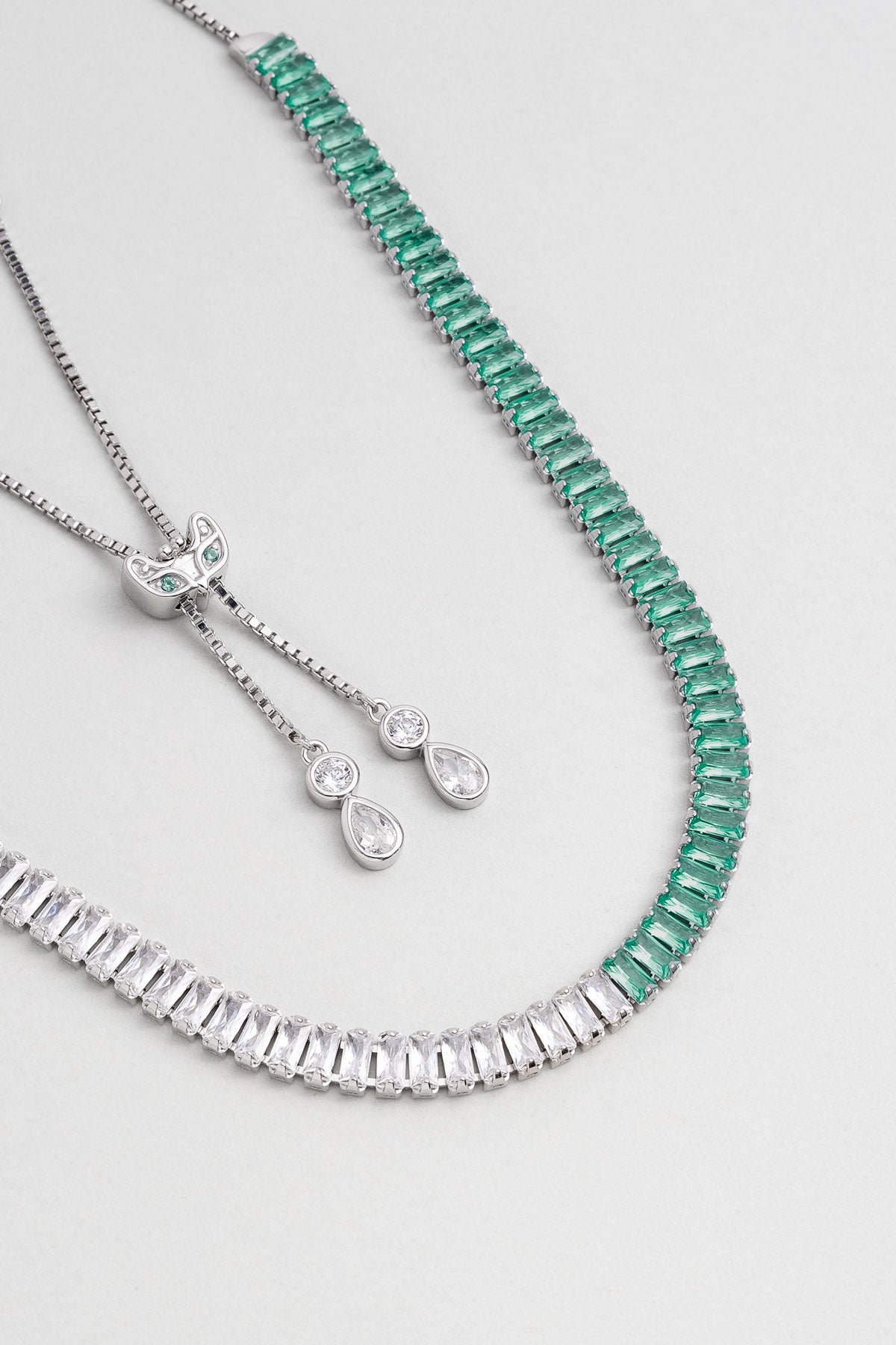 Renkli Baget 18 Ayar Beyaz Altın Kaplama Ayarlanabilir Gümüş Choker Kolye 5172160499