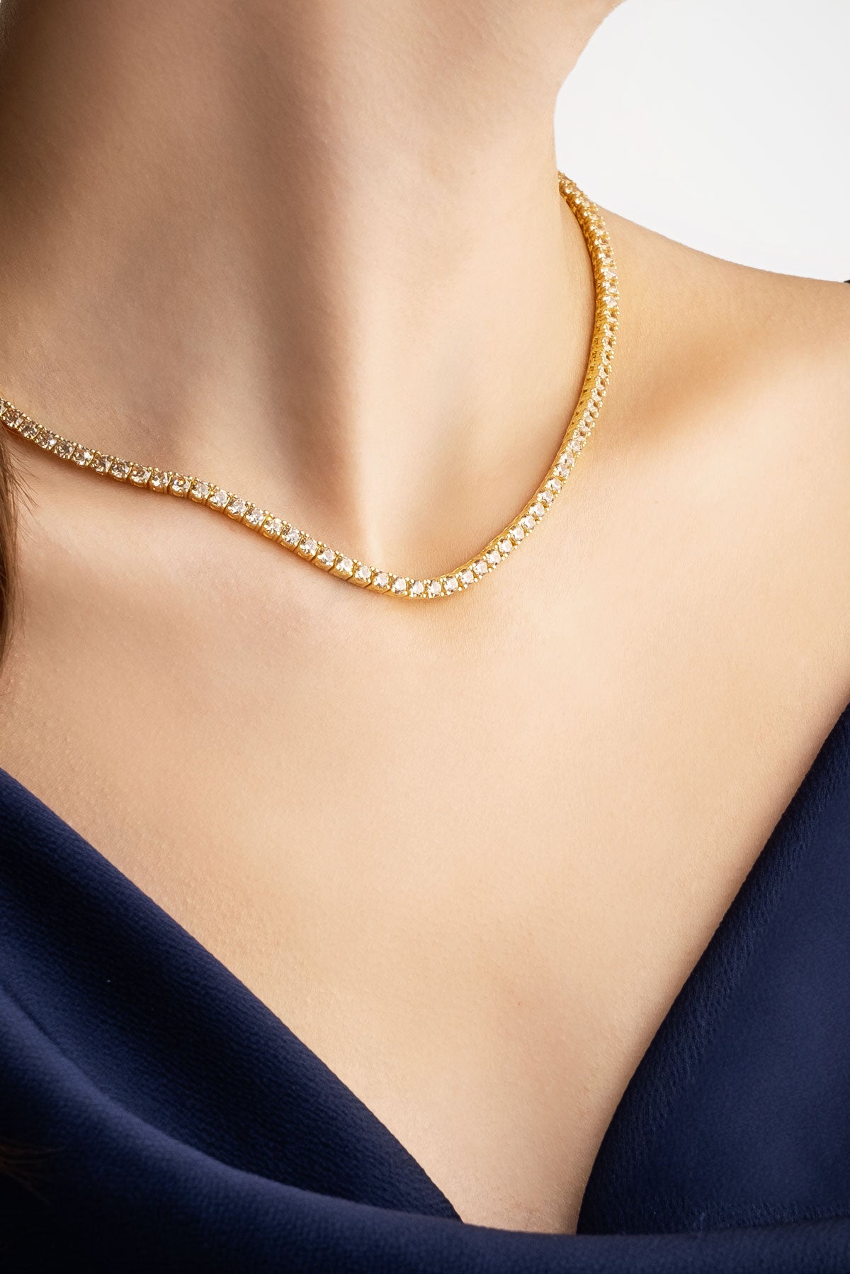 Renkli Taşlı 18 Ayar Sarı Altın Kaplama 42 Cm Gümüş Su Yolu Kolye 5154160644