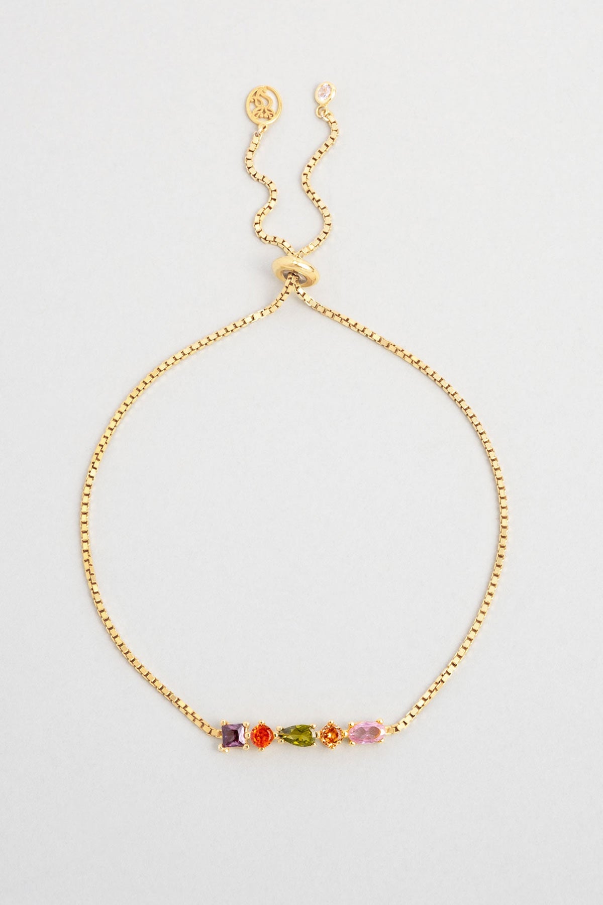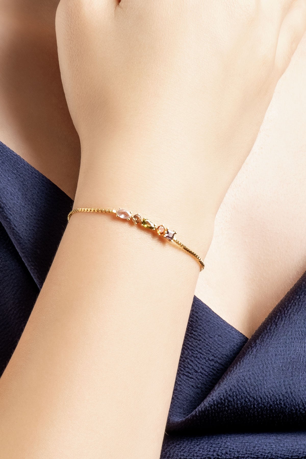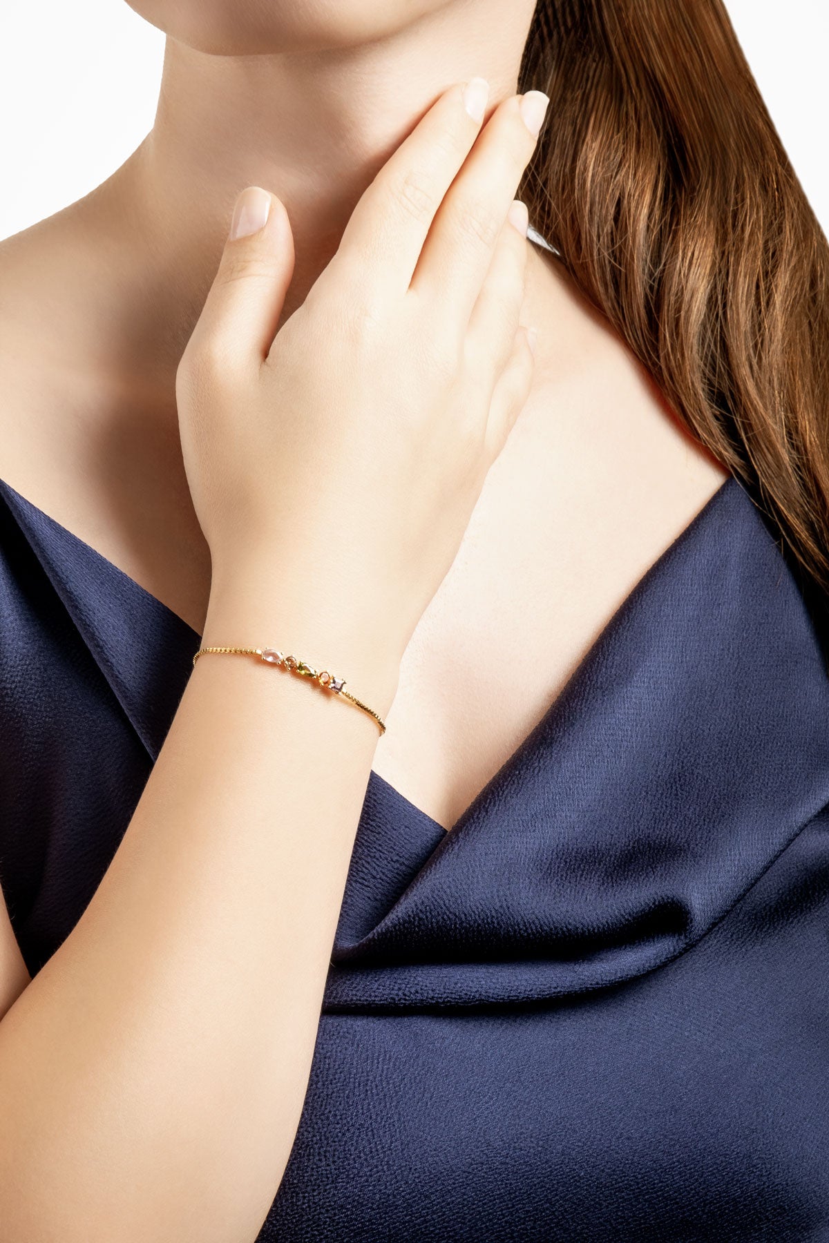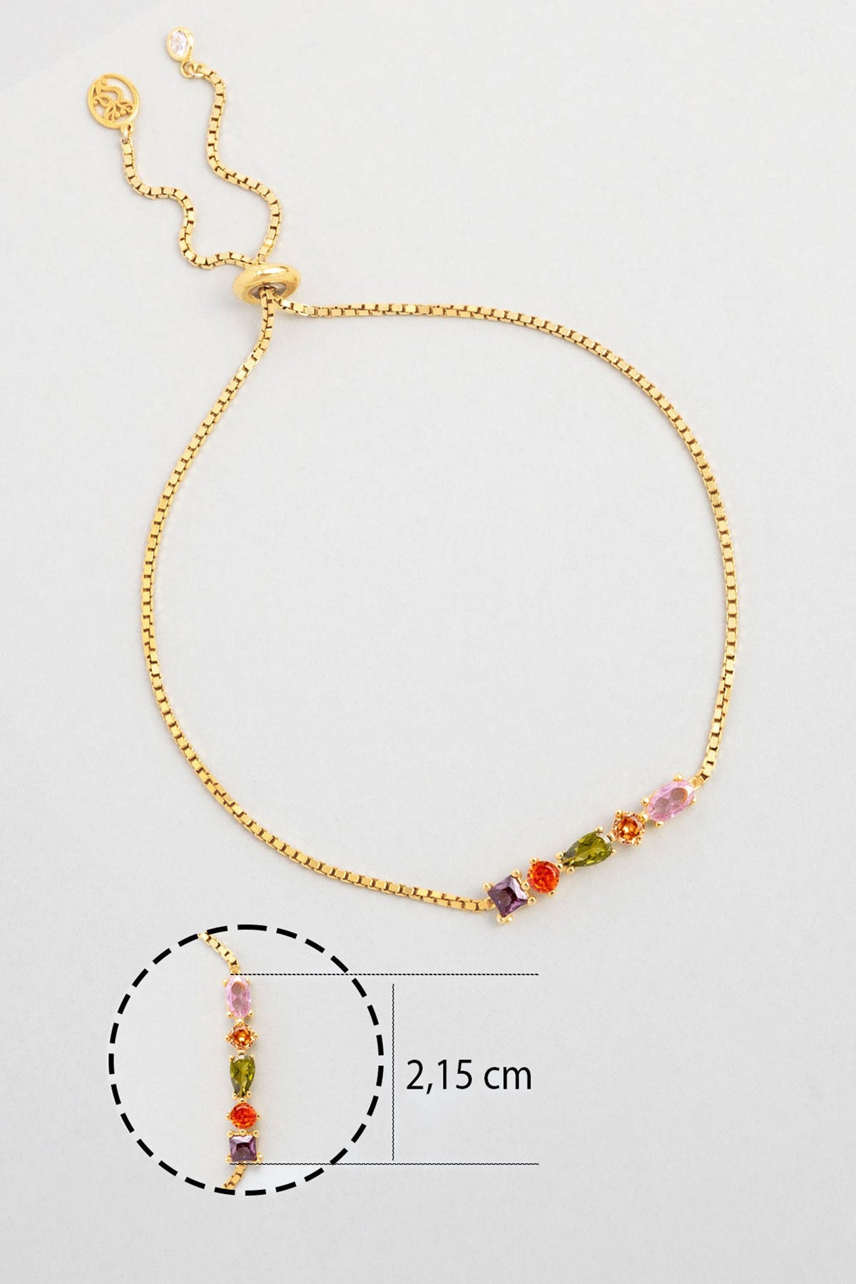 Renkli Taşlı 18 Ayar Sarı Altın Kaplama Ayarlanabilir Gümüş Bileklik 07283271344