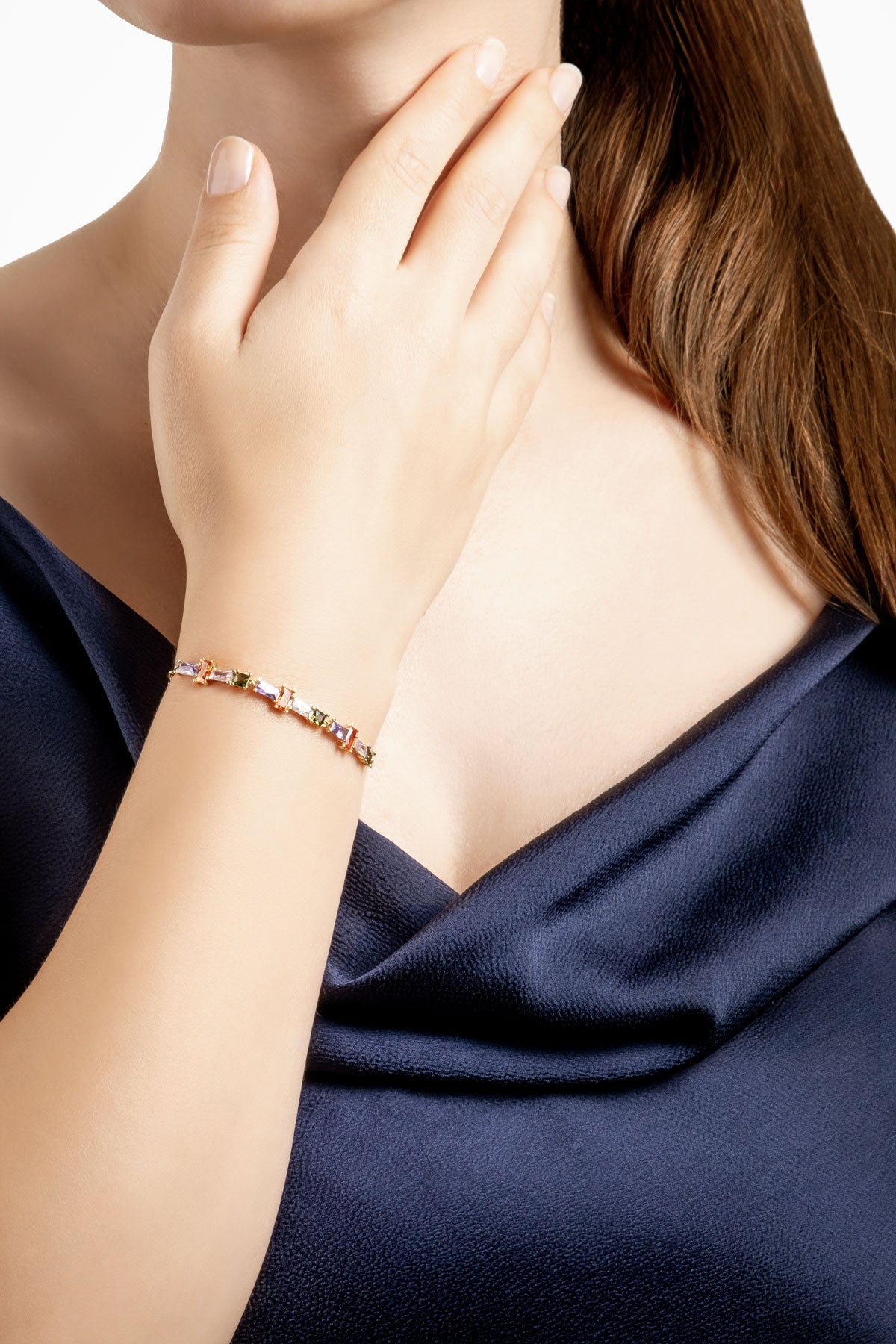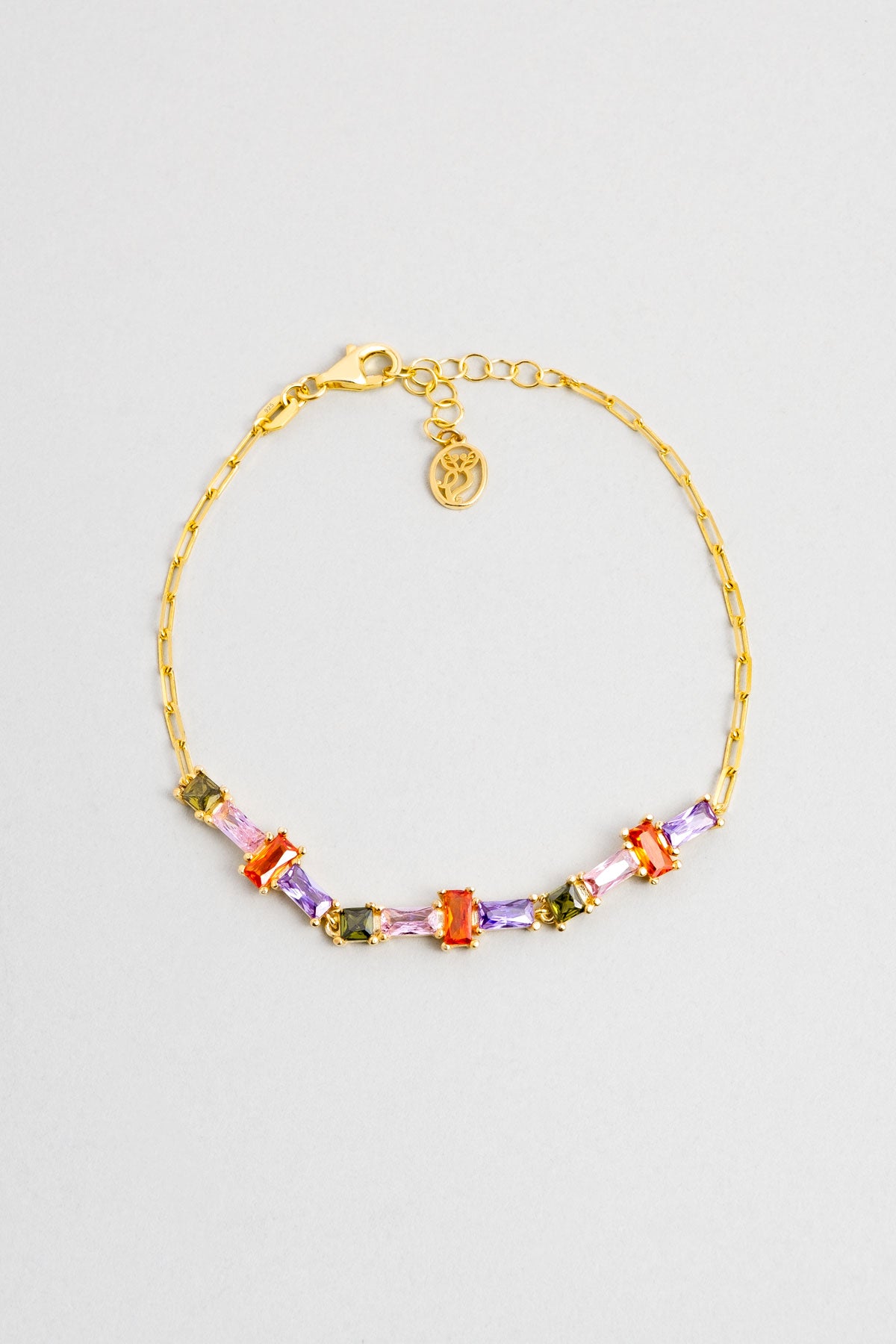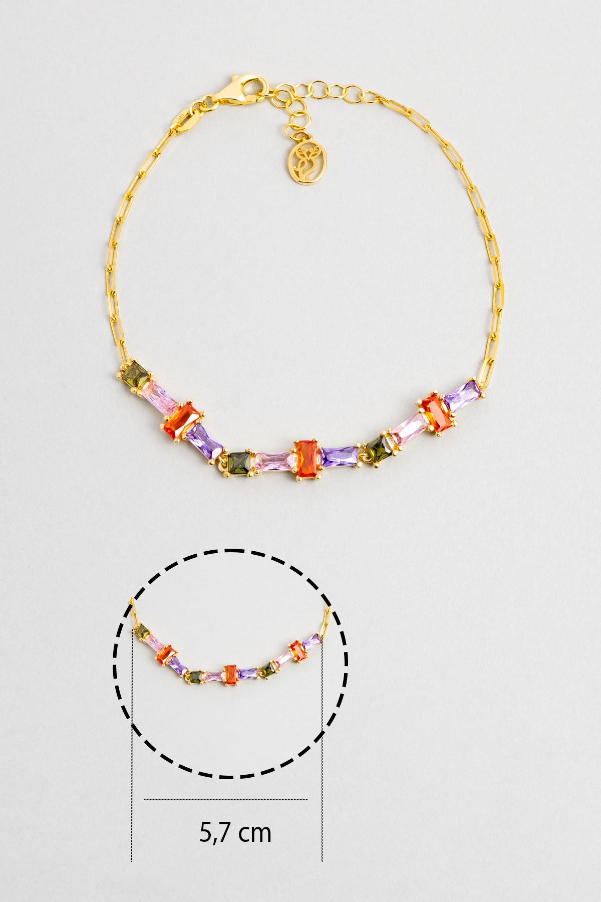 Renkli Yaz 18 Ayar Sarı Altın Kaplama 19 Cm Gümüş Zincir Bileklik 07283281344