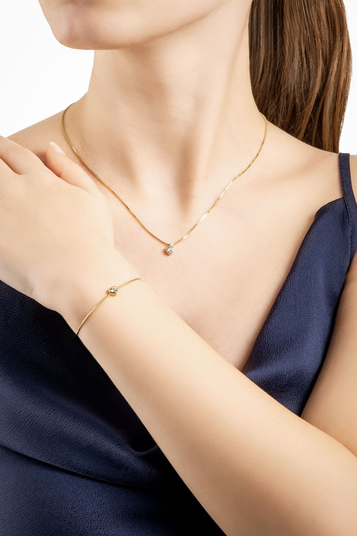 Romantik Aşk 18 Ayar Sarı Altın Kaplama 43 Cm Gümüş Kalp Kolye 5151810144