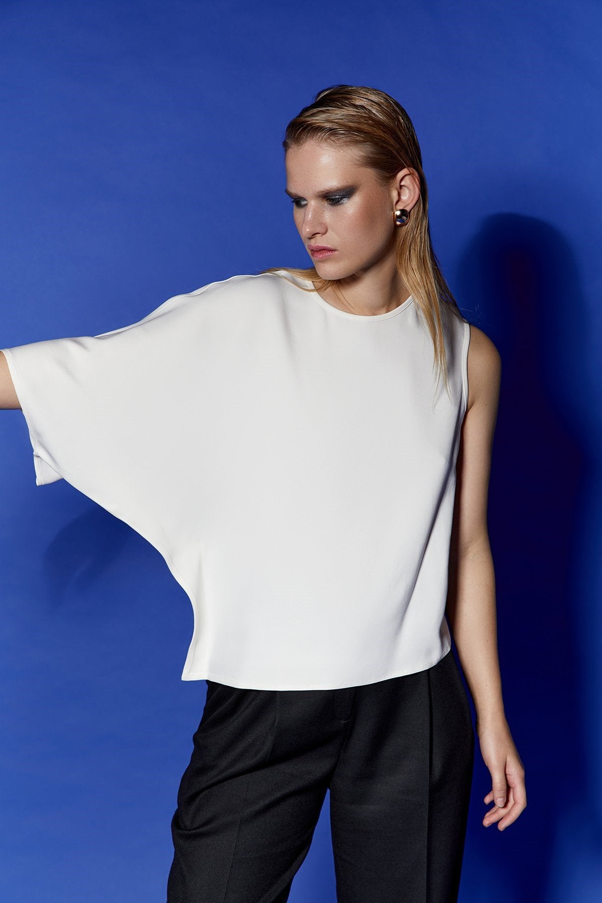 Asimetrik Tek Omuzlu Ekru Bluz