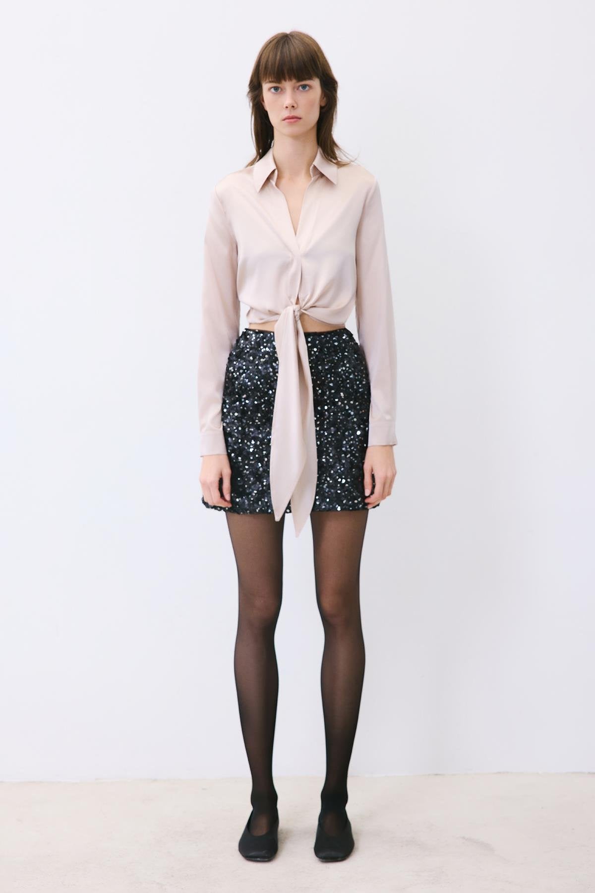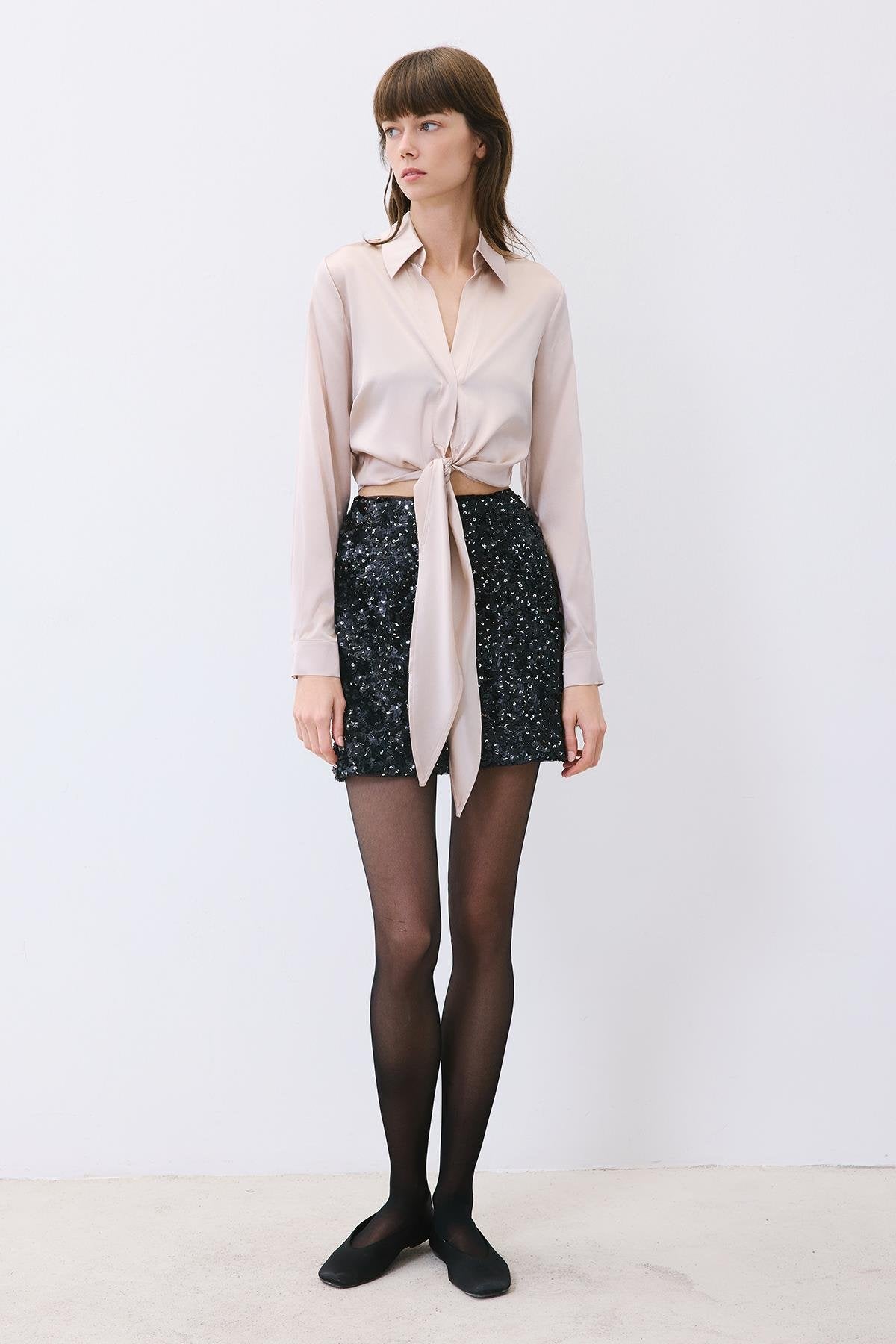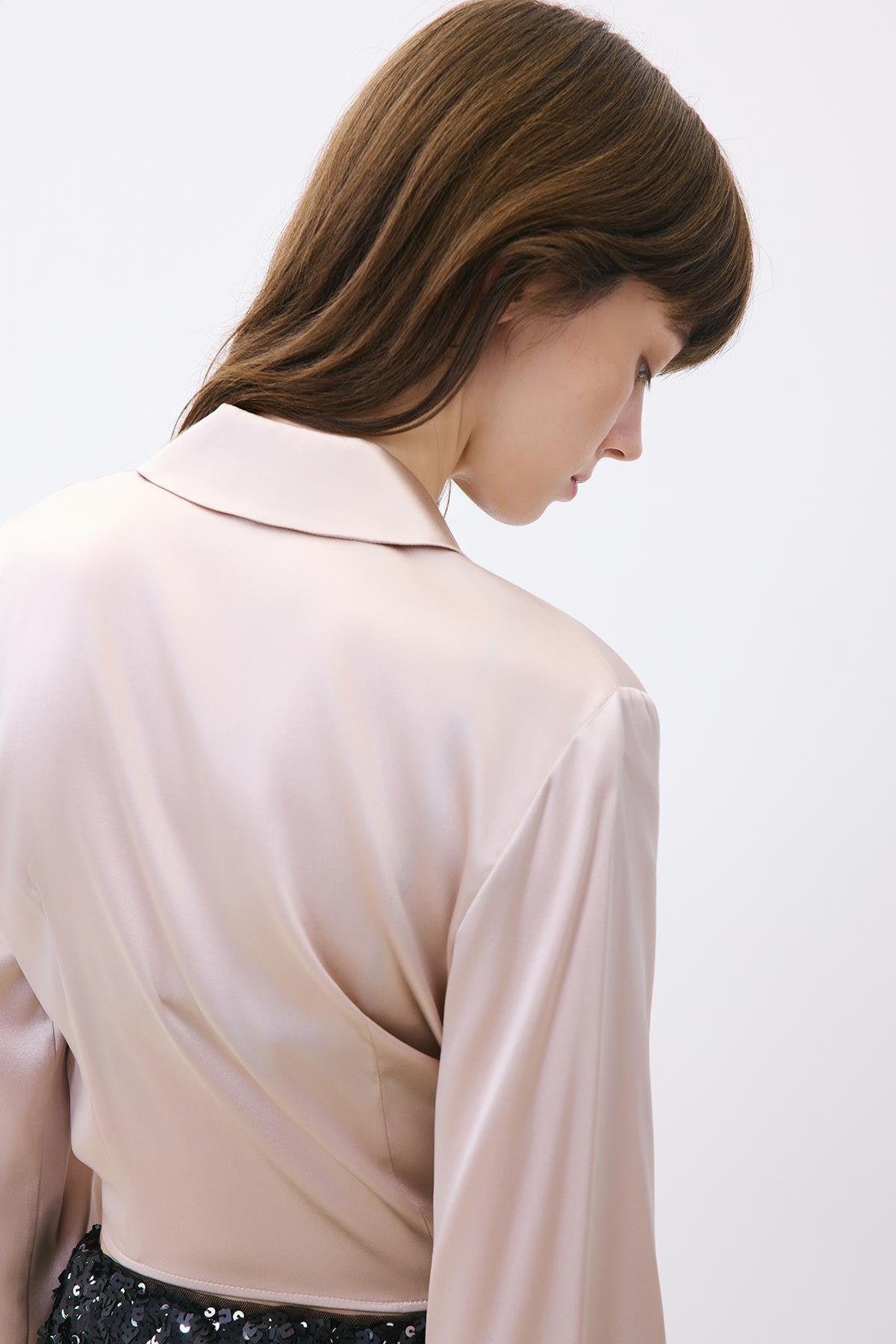 Bağlamalı Ipek Crop Taş Rengi Gömlek Bluz