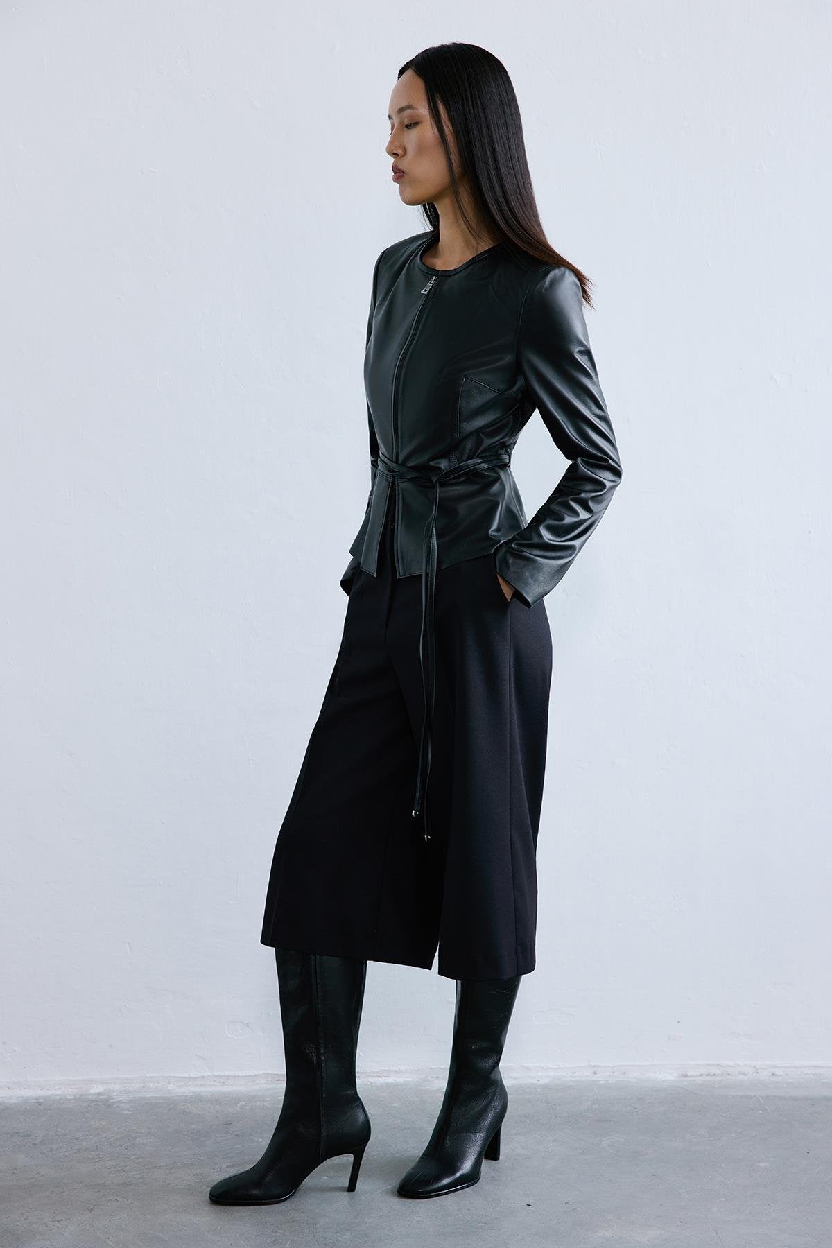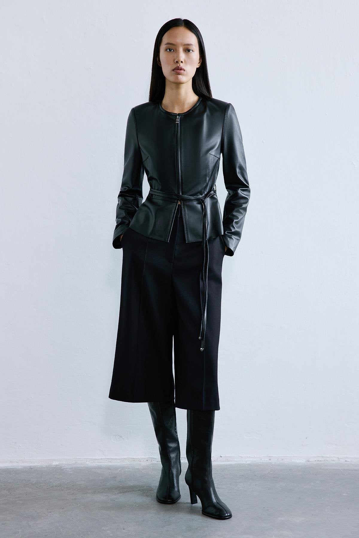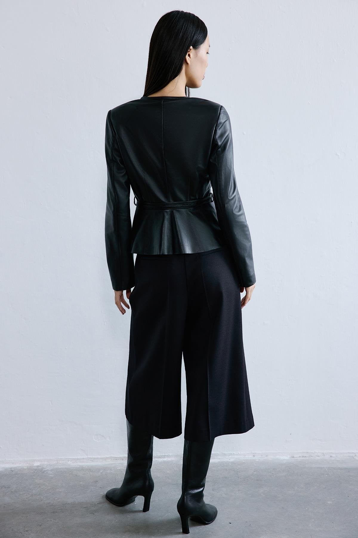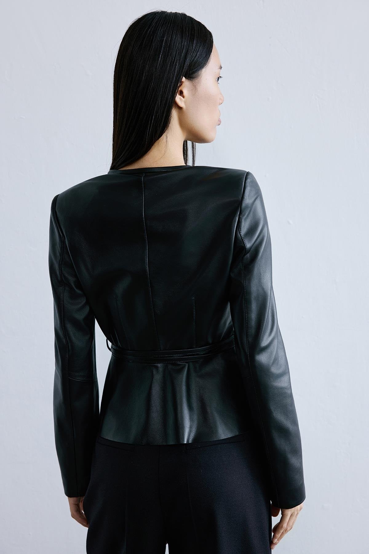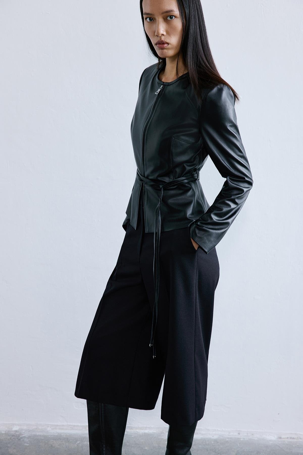 Hakiki Deri Sıfır Yaka Siyah Ceket