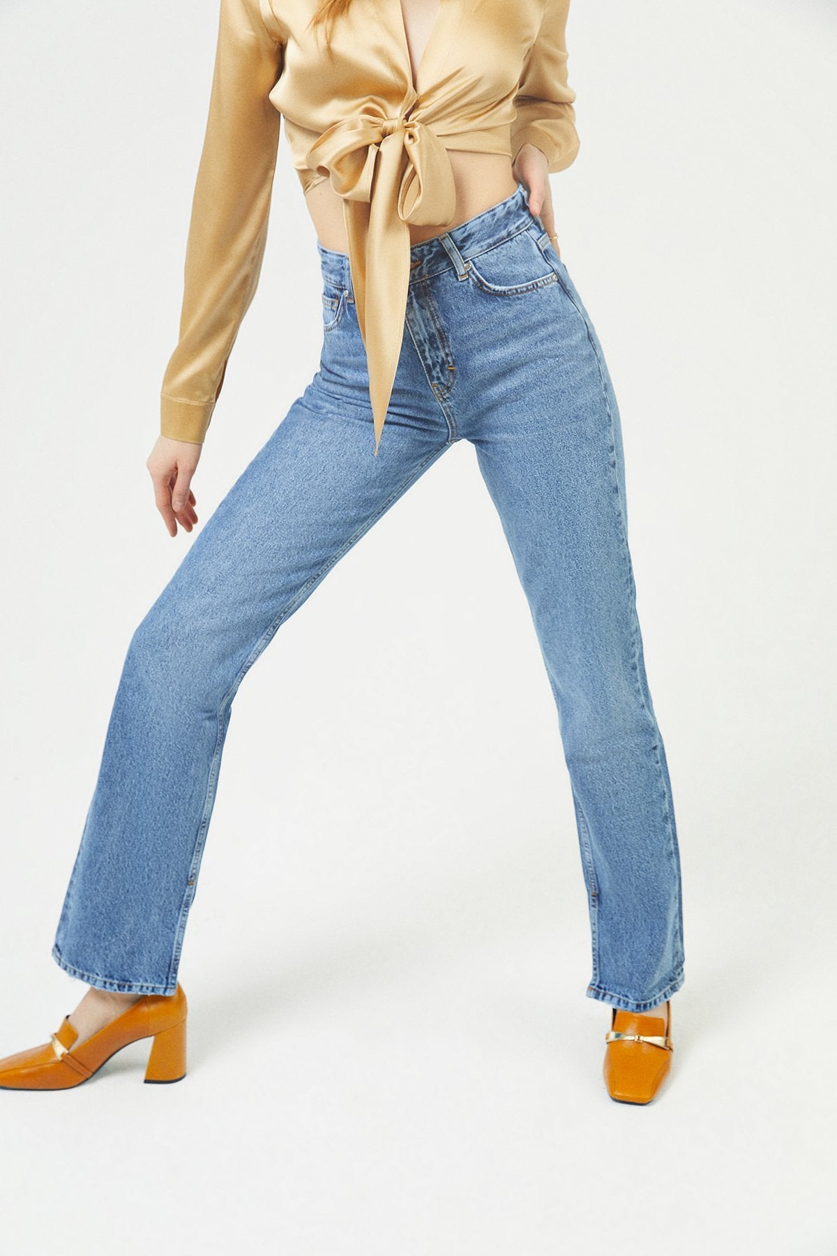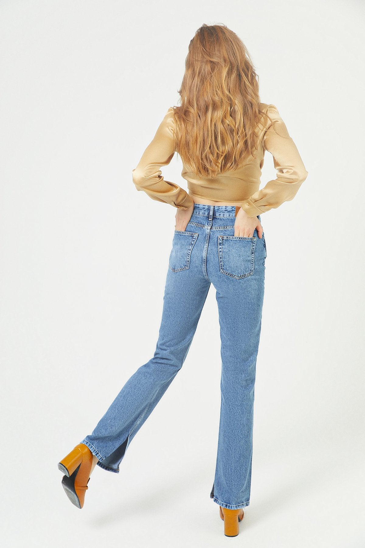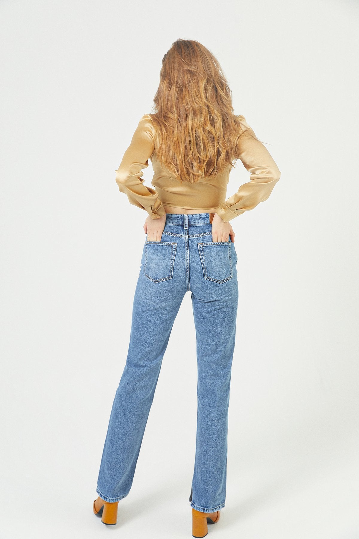 Mavi Yırtmaçlı Düz Kesim Jean