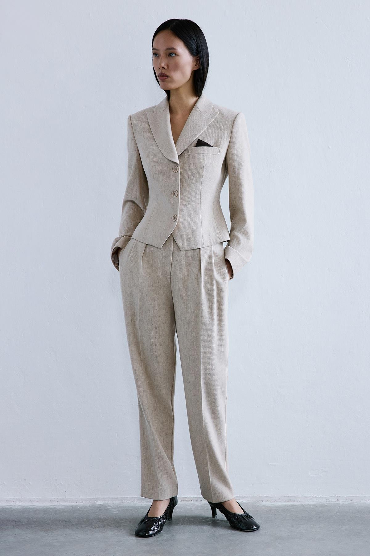 - Kumaş: %42 Polyester %27 Yün %15 Viskon %13 Poliamid %3 Elastan Astar: %100 Polyester