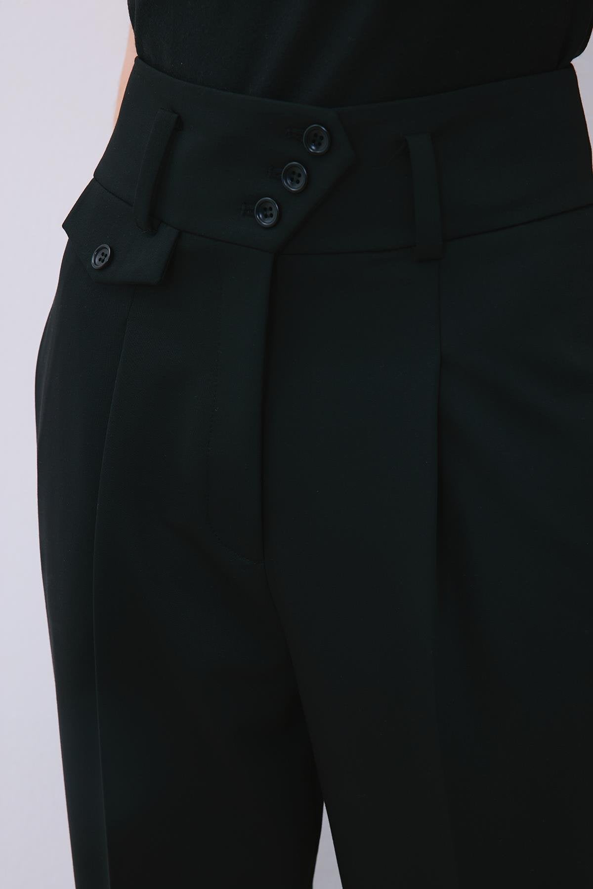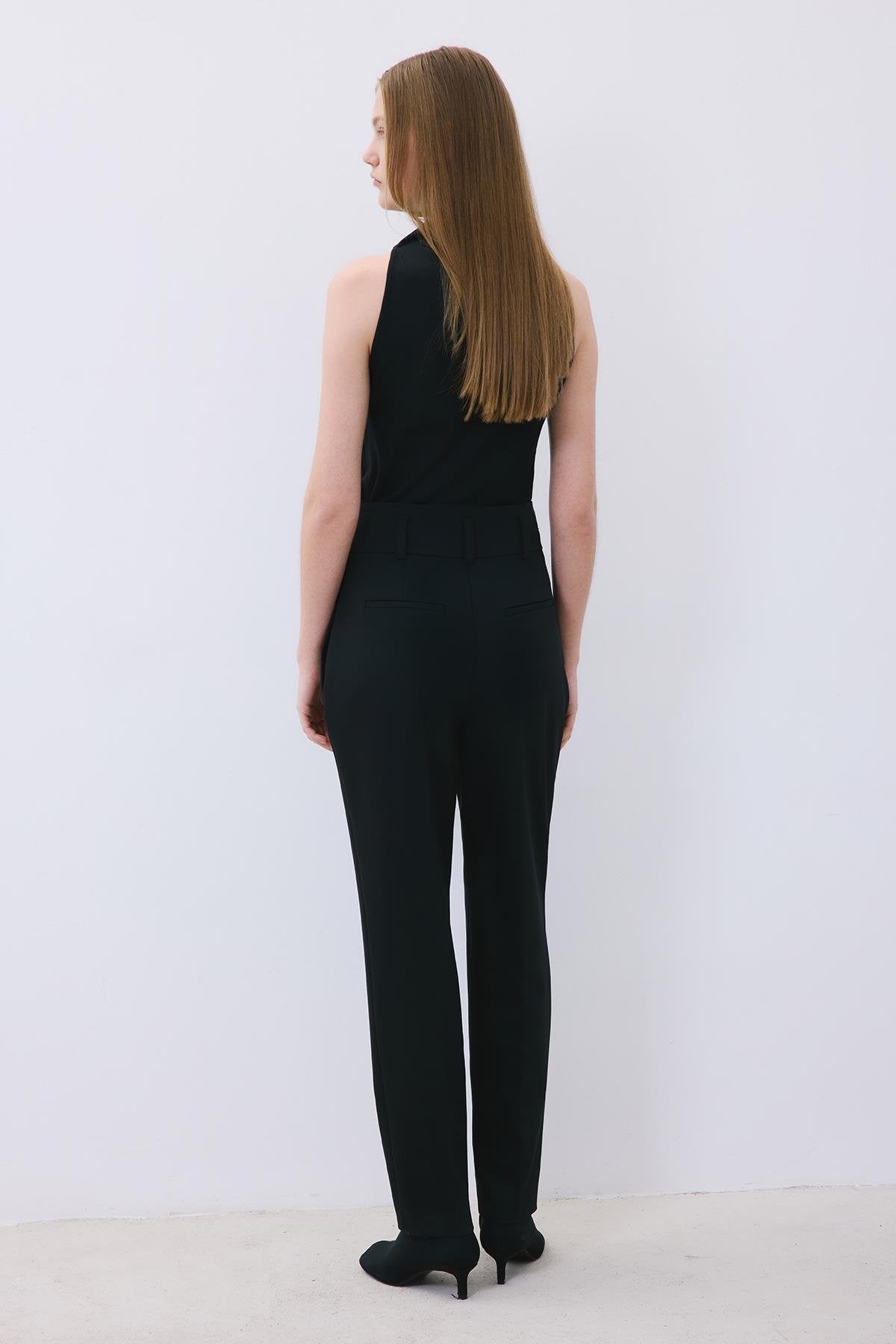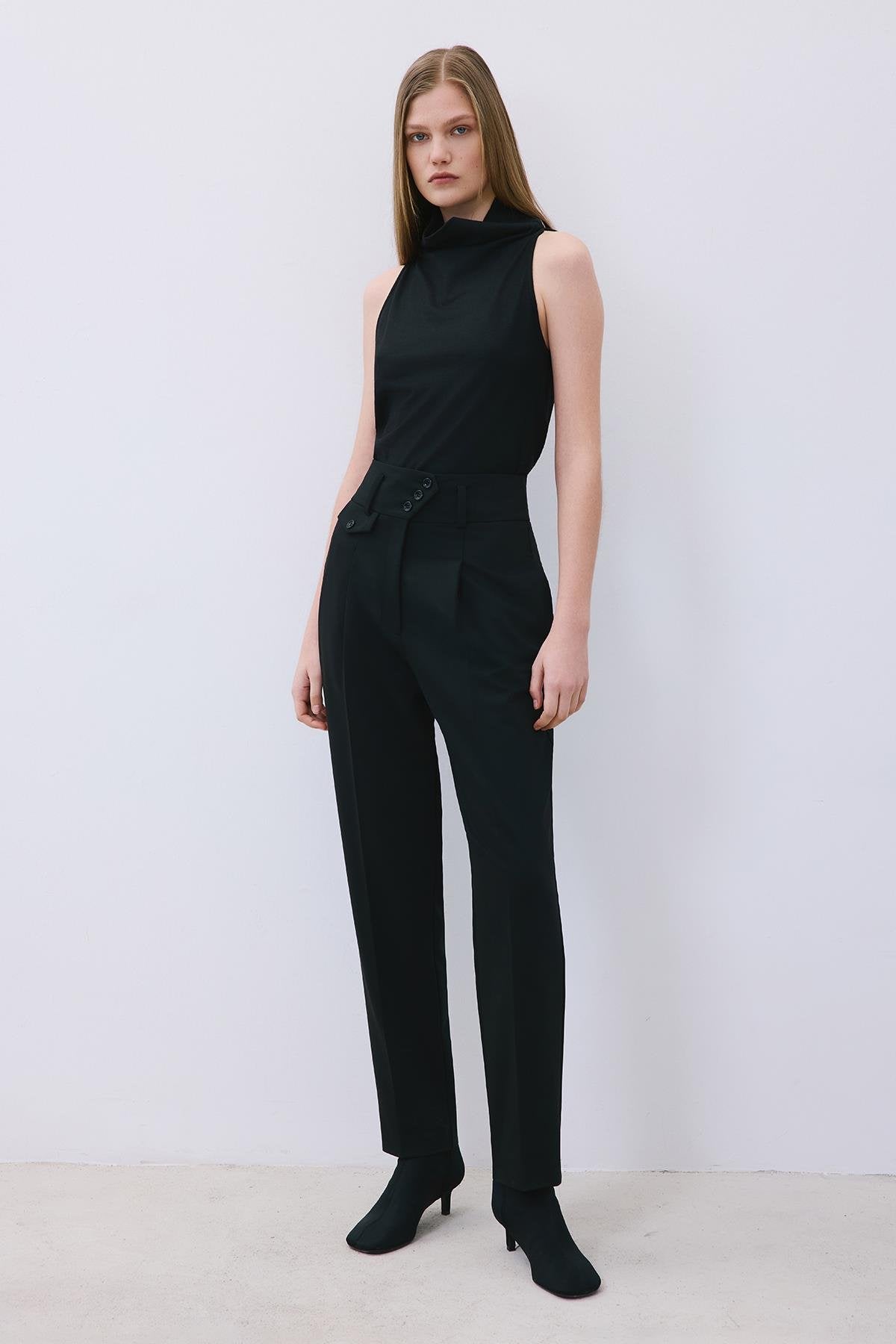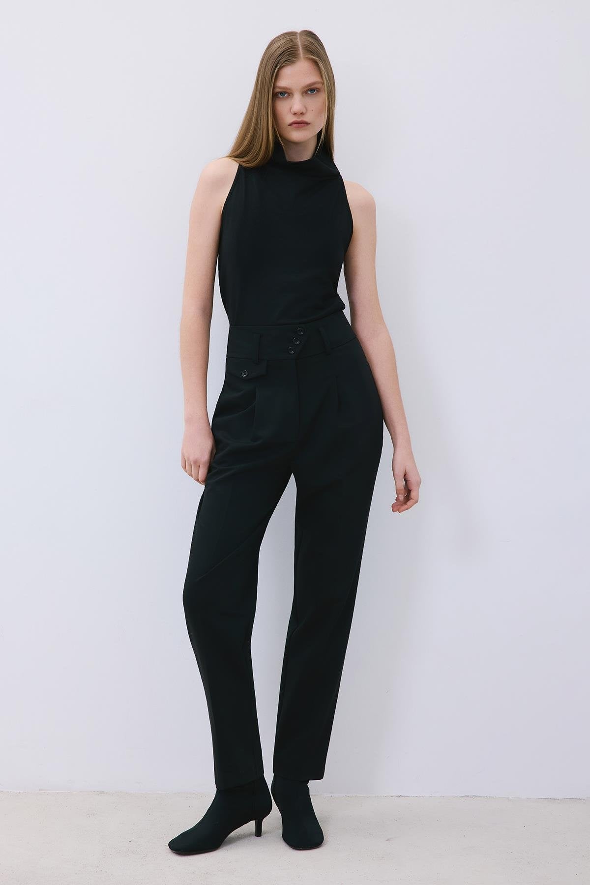 Pileli Dar Paça Yüksek Bel Siyah Pantolon