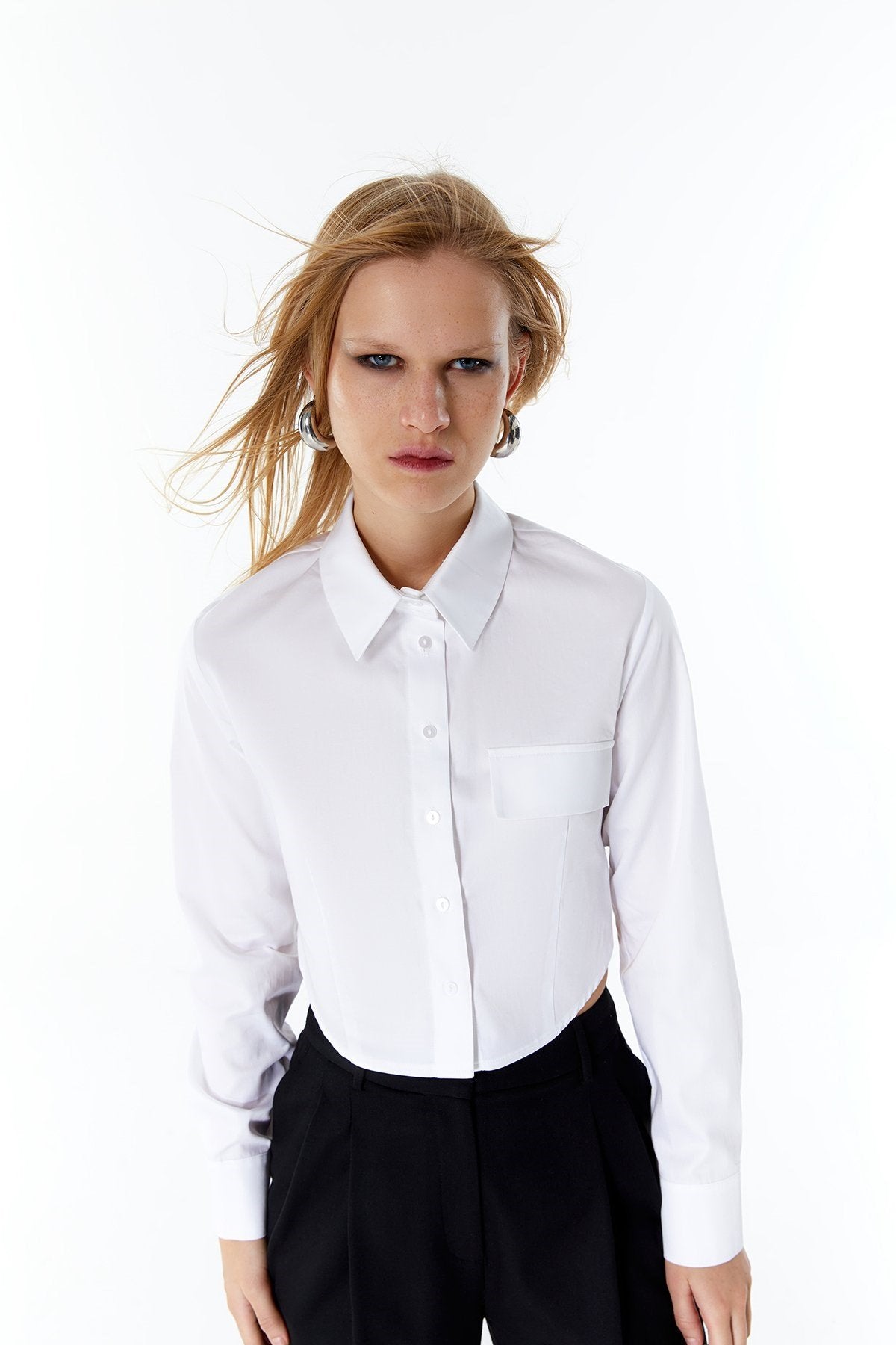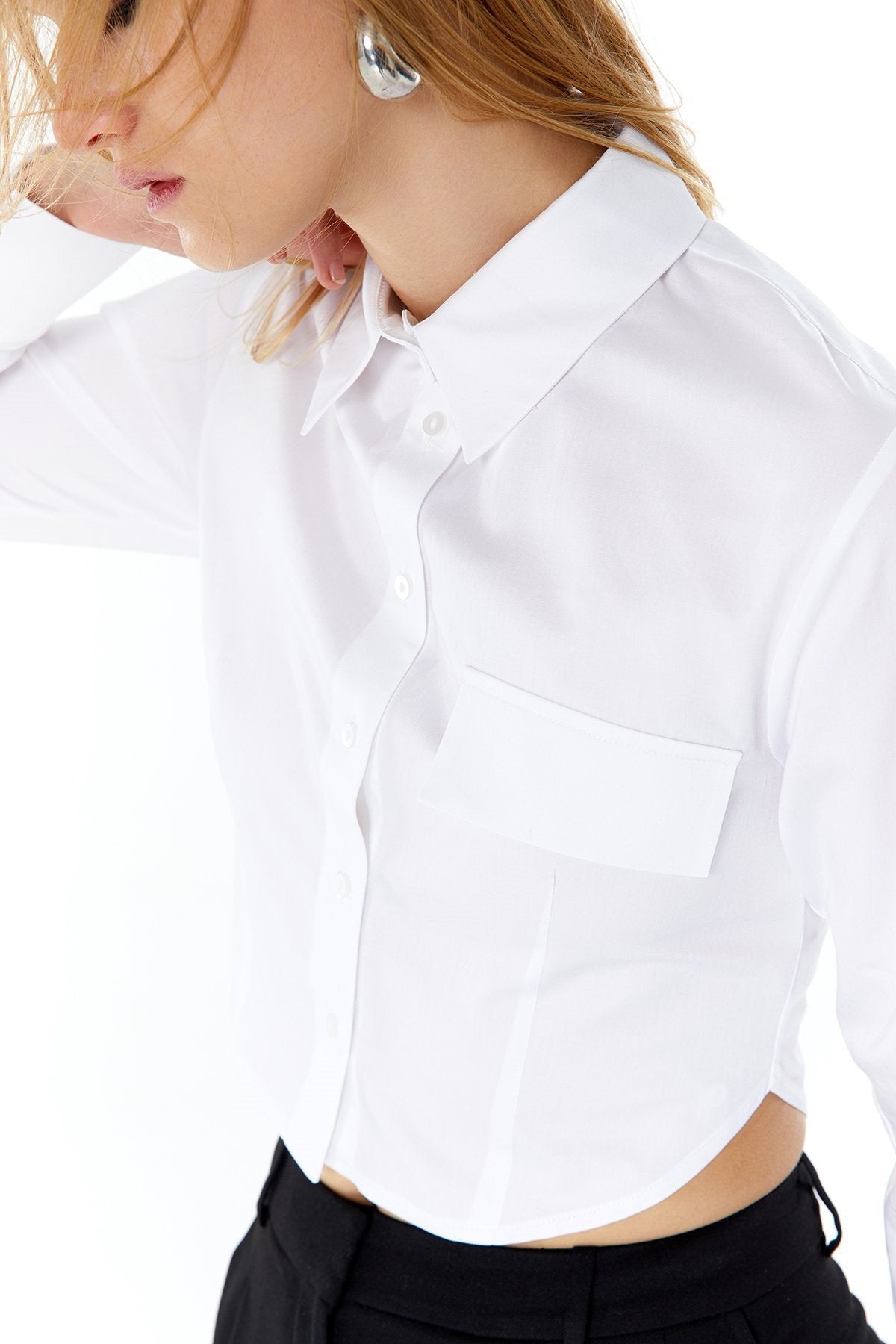 Poplin Beyaz Crop Gömlek