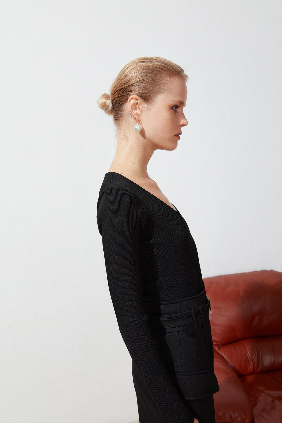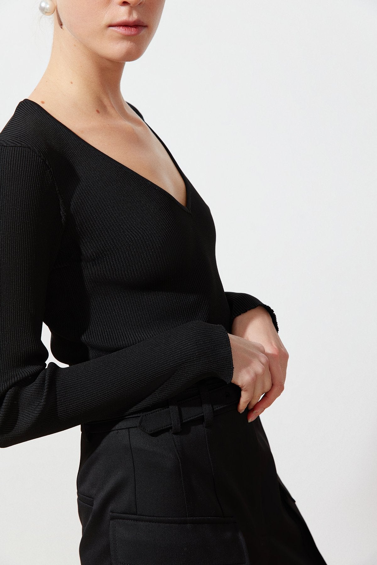 Siyah V Yaka Uzun Kollu Triko Body