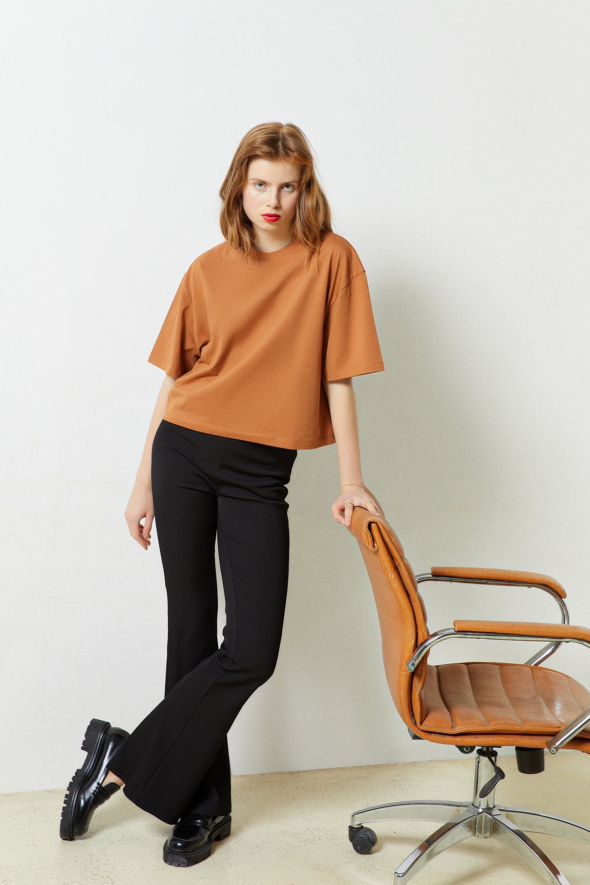 Tütün Geniş Kesim Kısa T-shirt