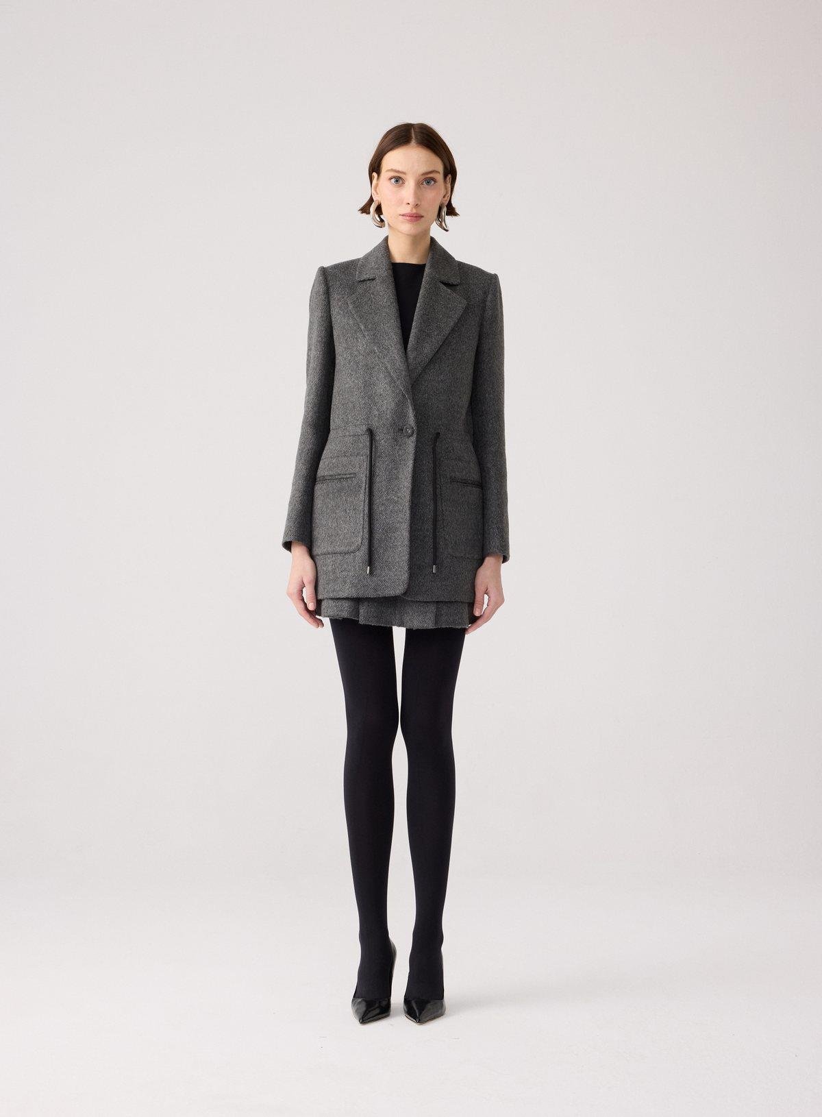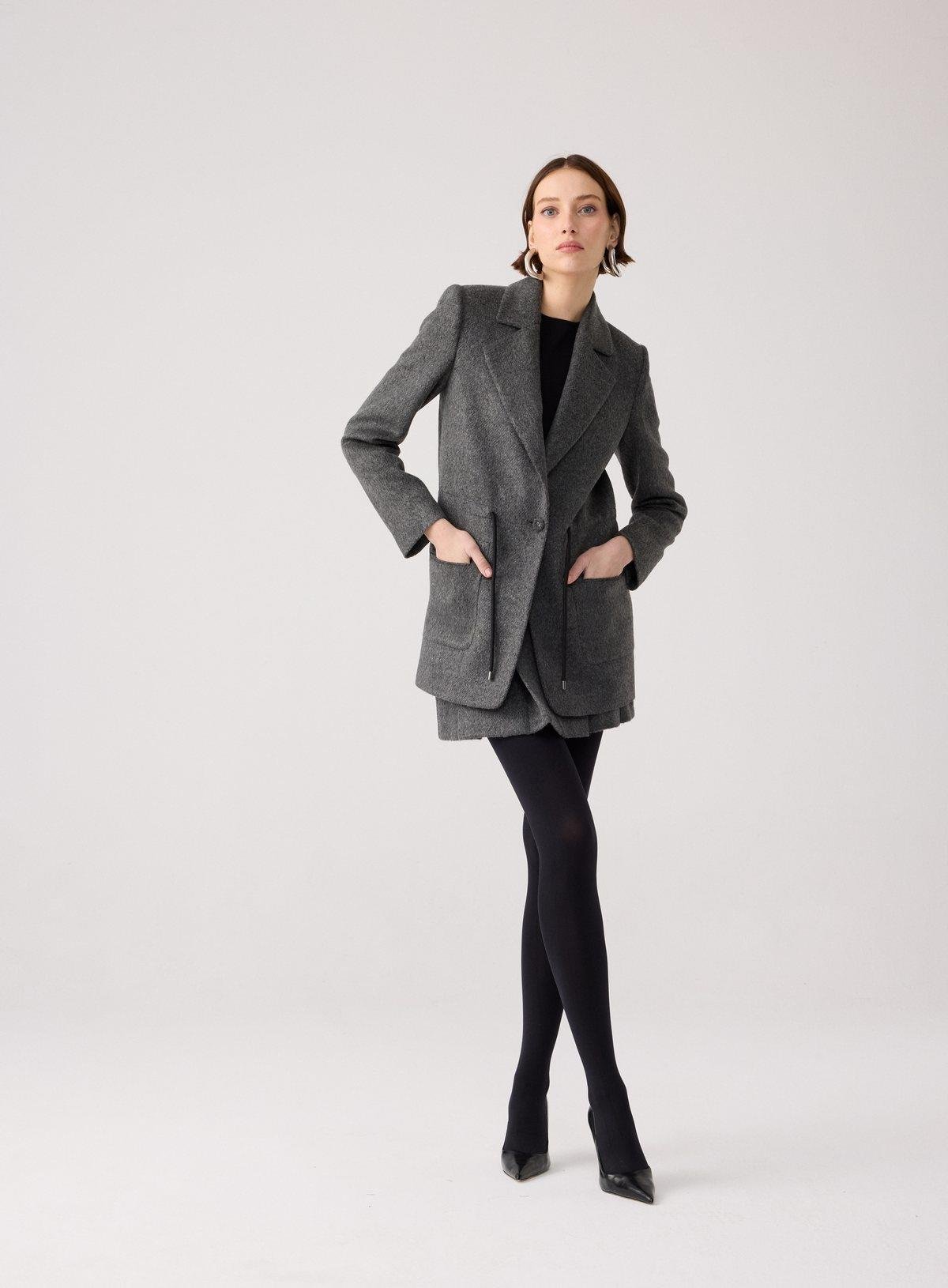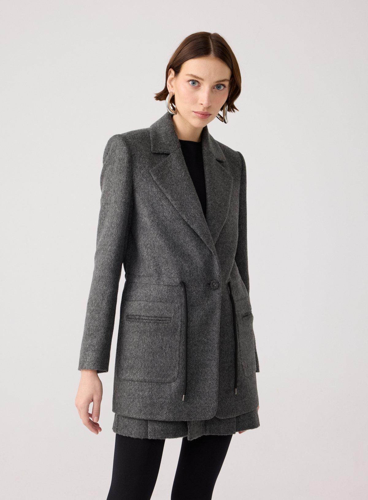 Yün Dokulu Cep Detaylı Antrasit Ceket
