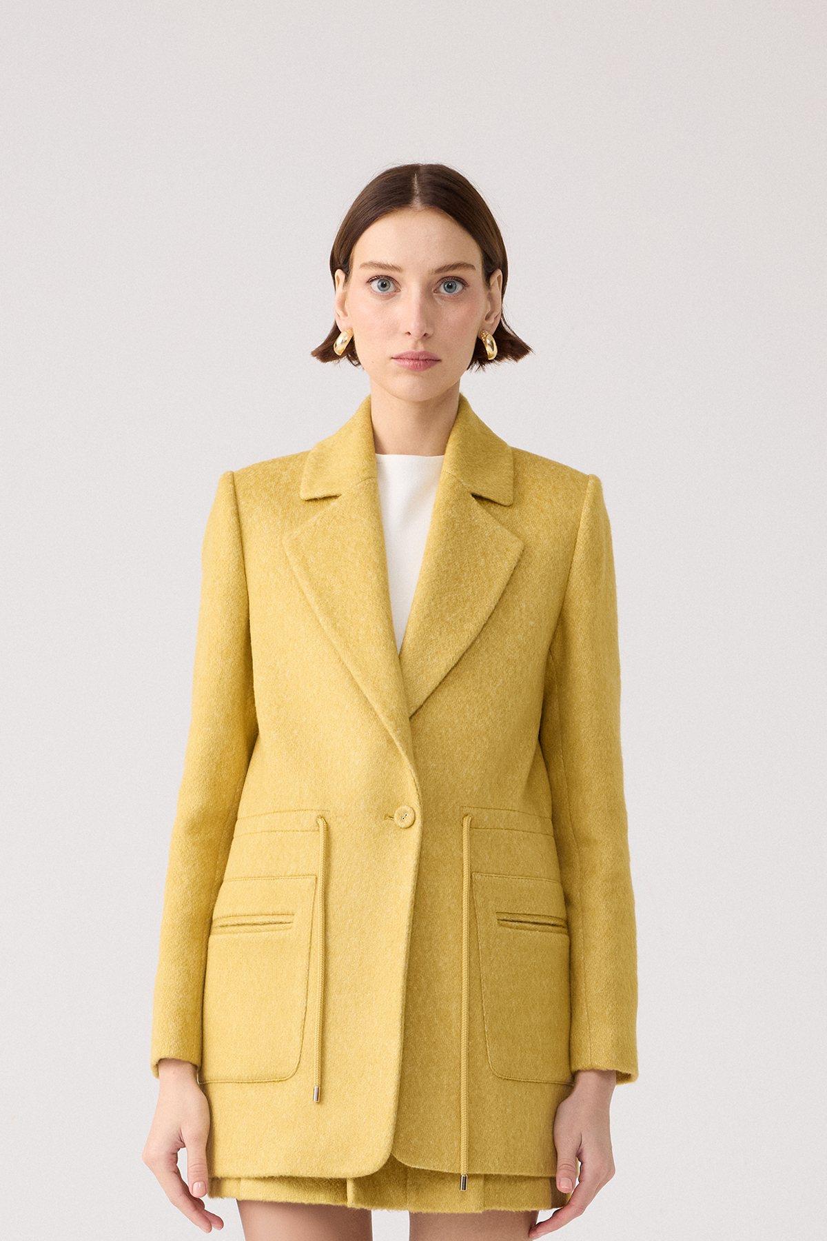 Yün Dokulu Cep Detaylı Haki Ceket