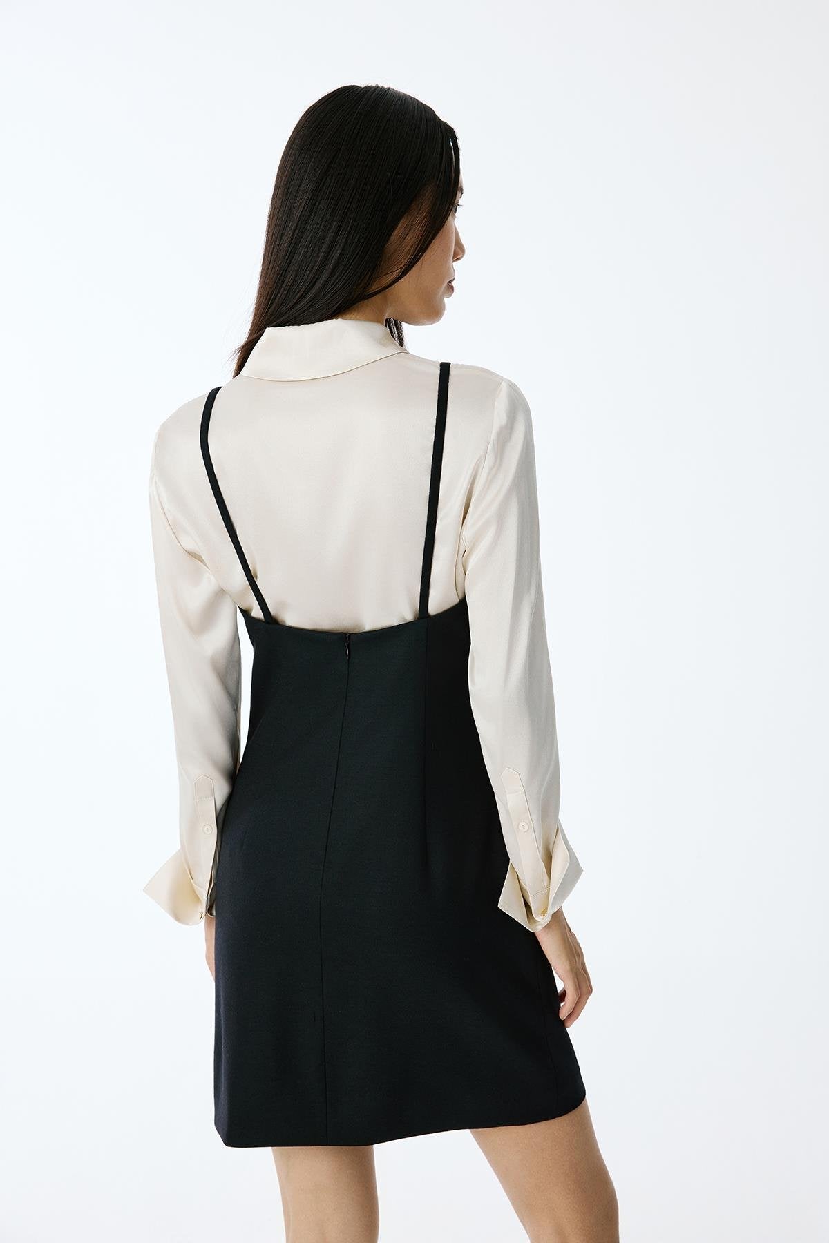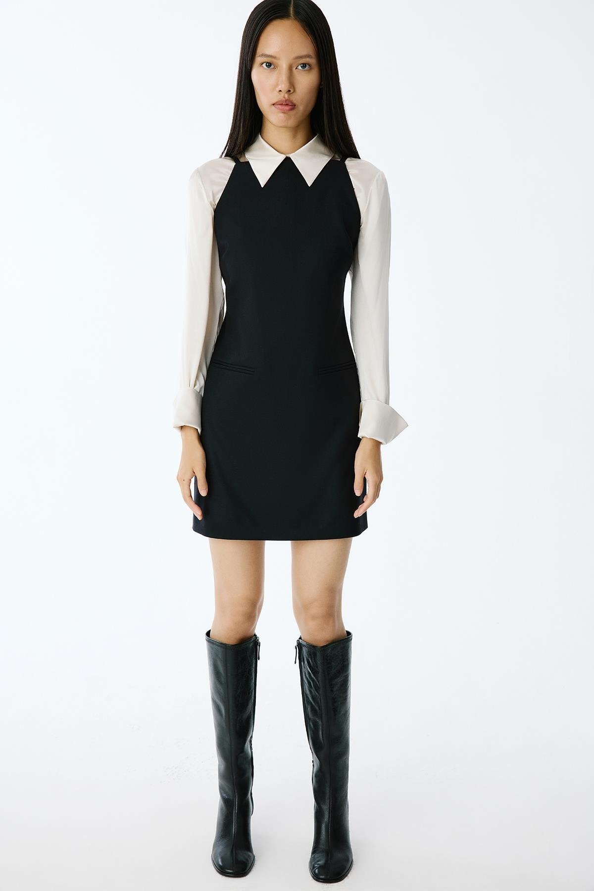 Yün Dokulu Kare Yaka Mini Siyah Elbise