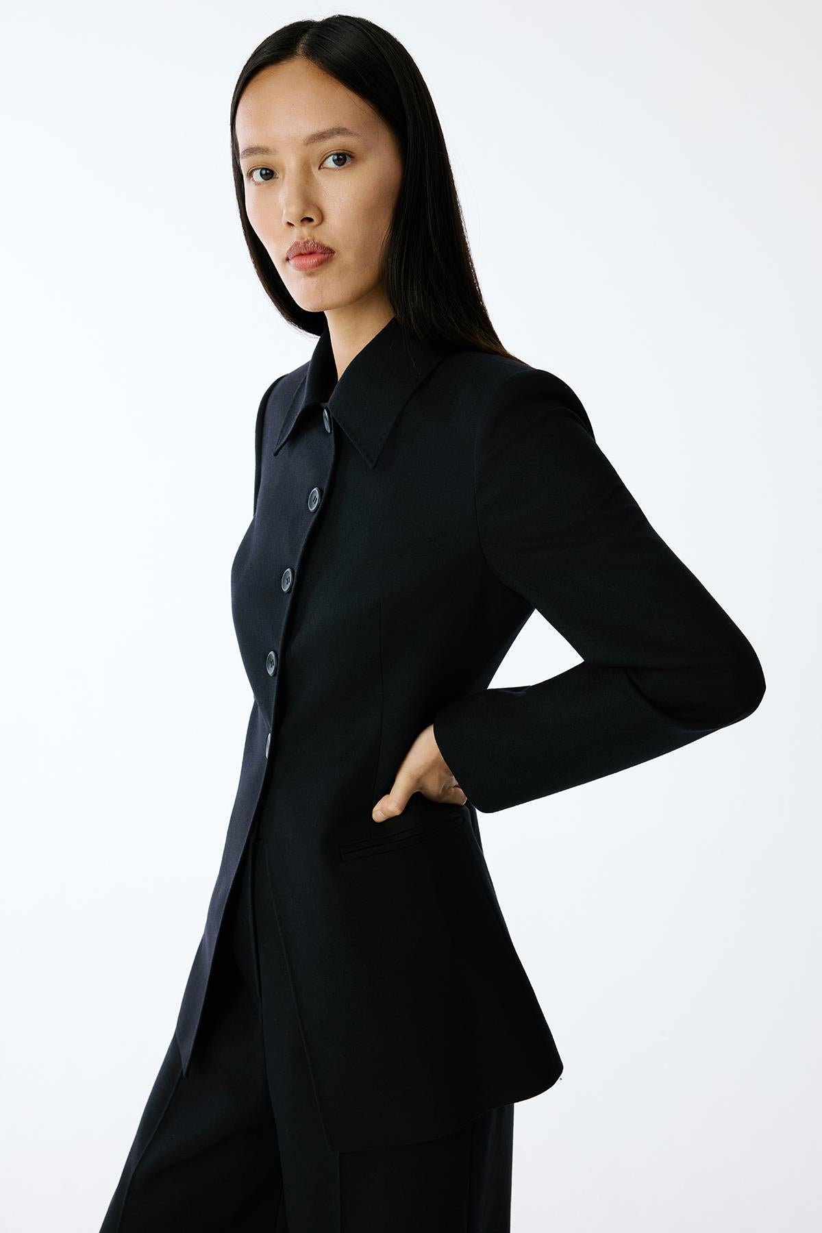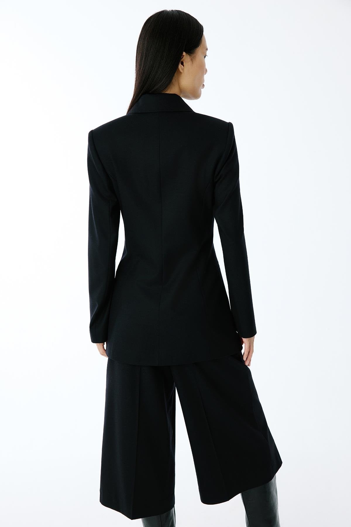 Yün Dokulu Siyah Uzun Ceket