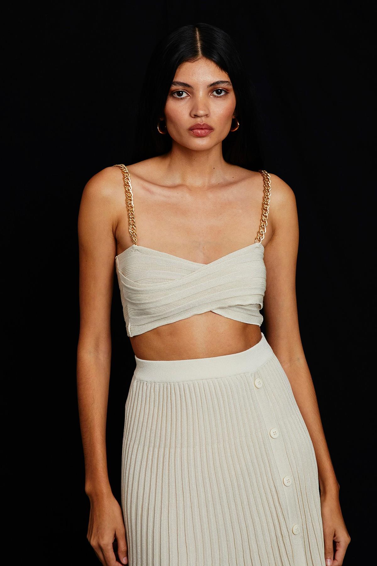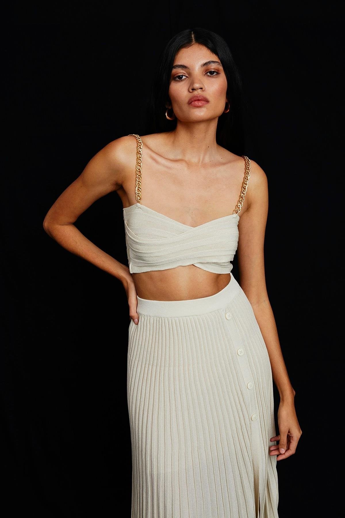 Zincir Askılı Ekru Triko Top