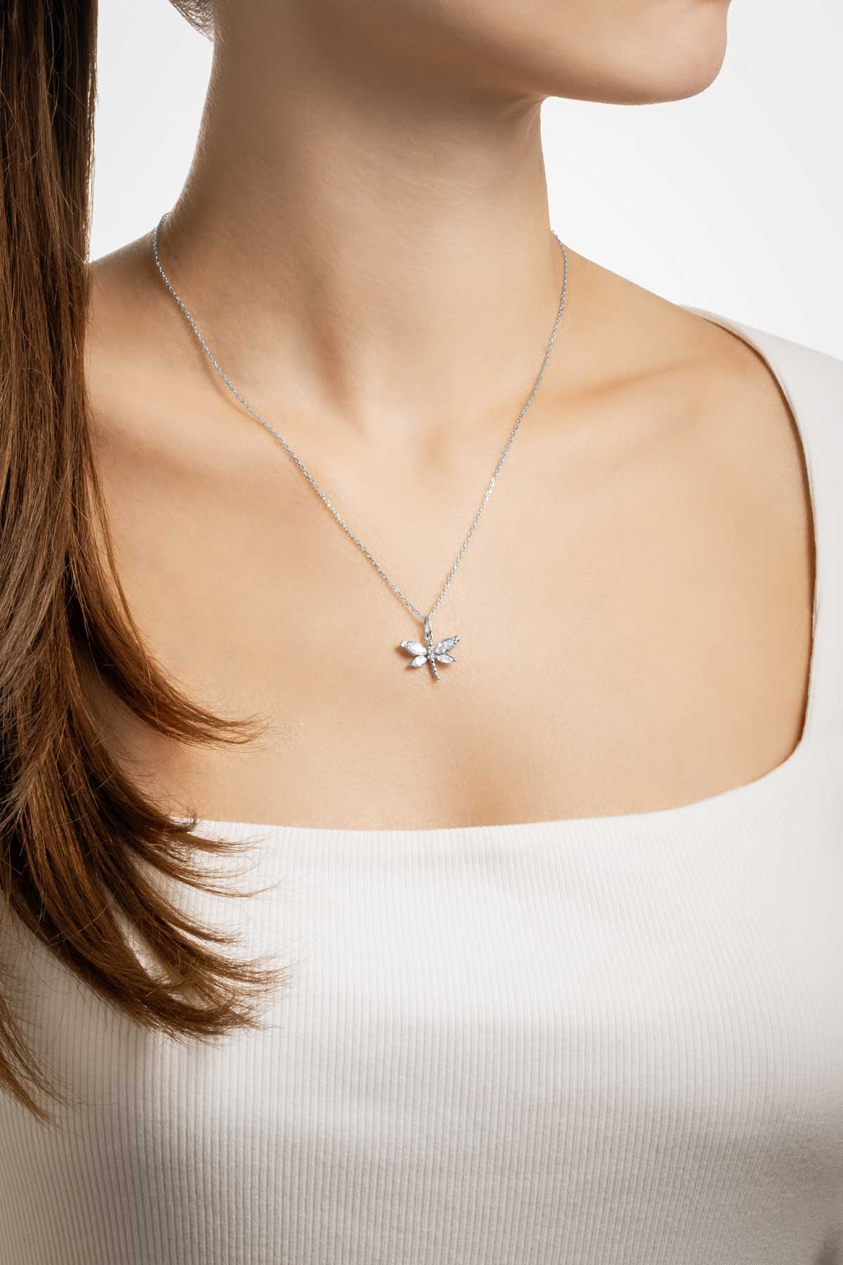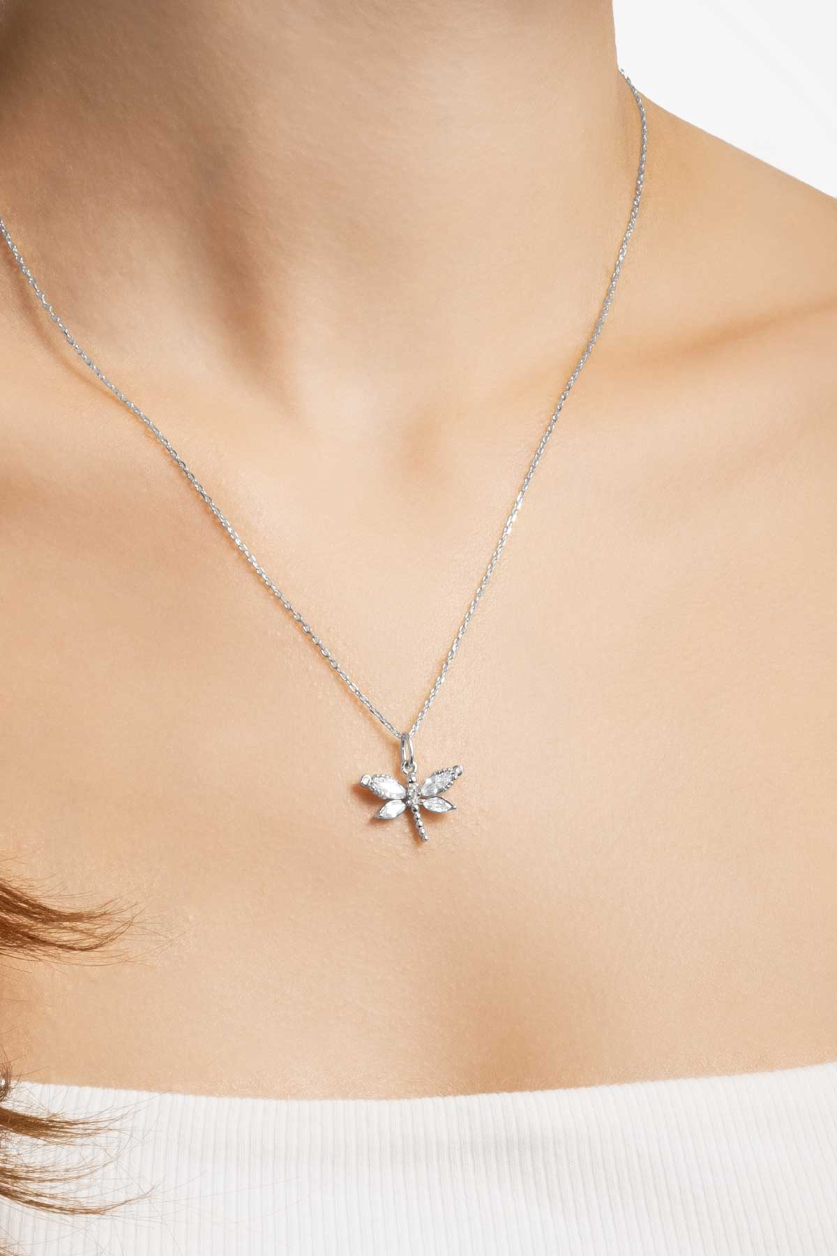 Rüzgarın Arkadaşı 18 Ayar Beyaz Altın Kaplama 45 Cm Gümüş Yusufçuk Kolye 5165650199