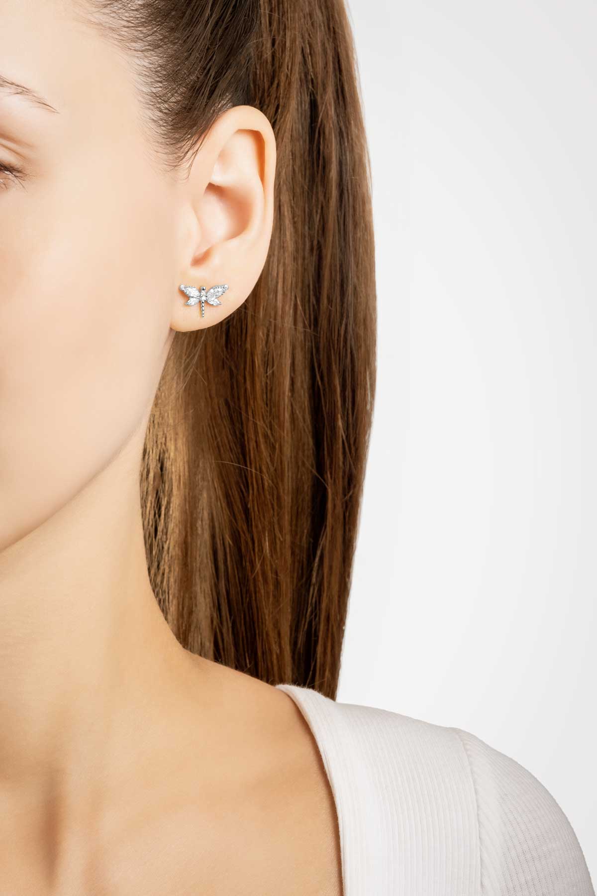 Rüzgarın Arkadaşı 18 Ayar Beyaz Altın Kaplama Gümüş Yusufçuk Küpe 5165640199