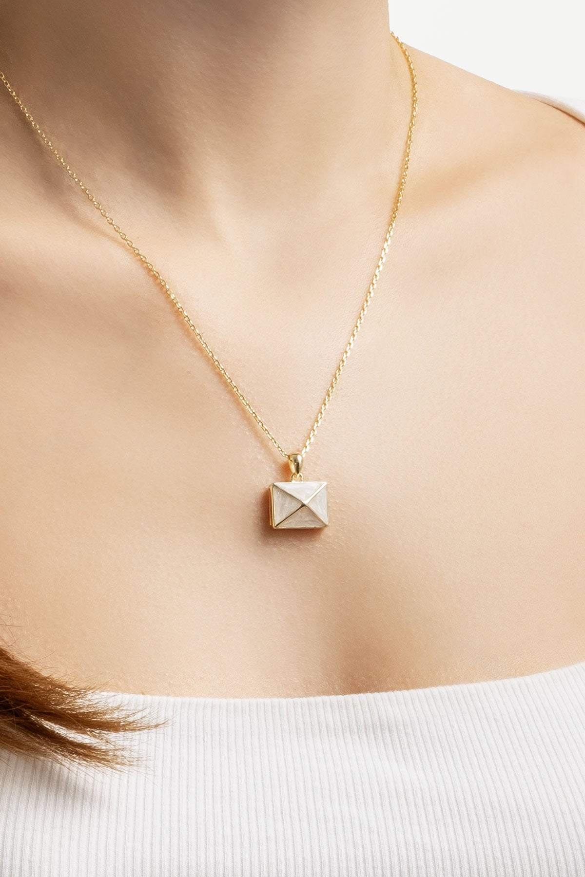 Saklı Mektup 18 Ayar Sarı Altın Kaplama 45 Cm Gümüş Kolye 5166090144