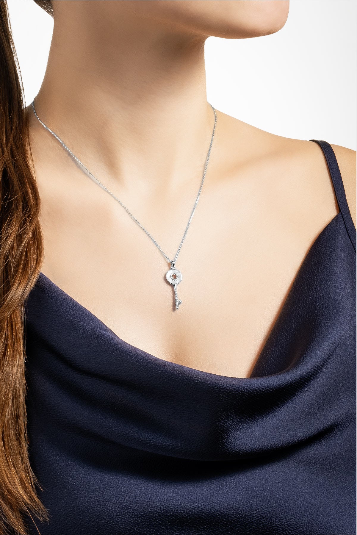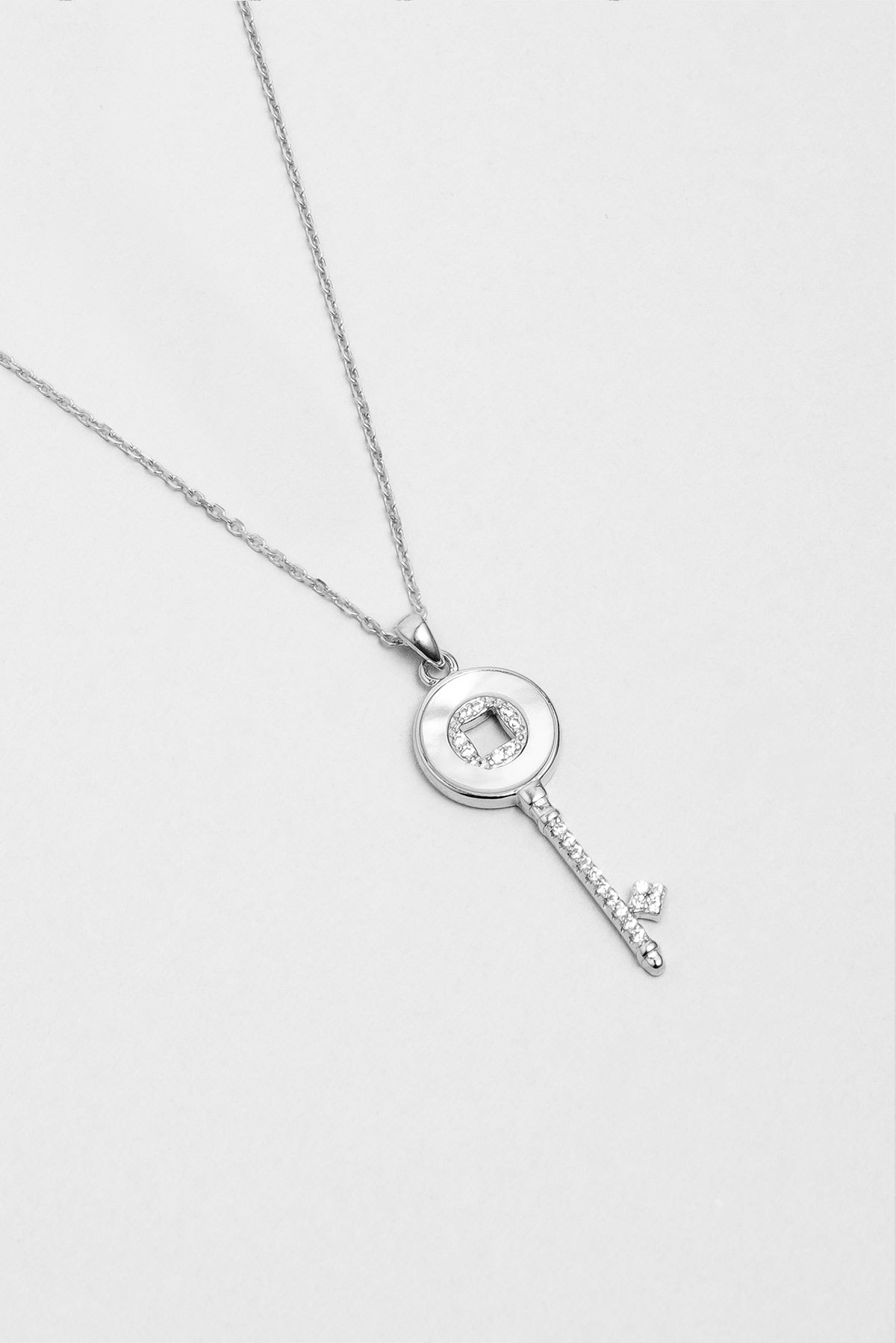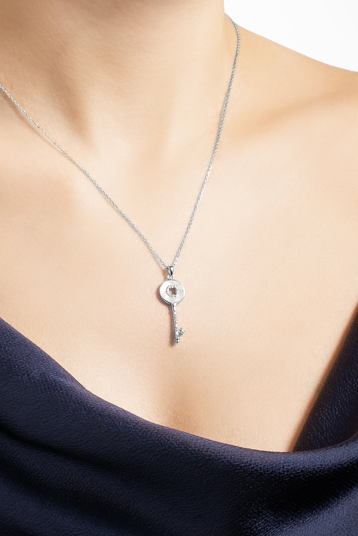 Şans Anahtarı 18 Ayar Beyaz Altın Kaplama 45 Cm Gümüş Kolye 5169994699