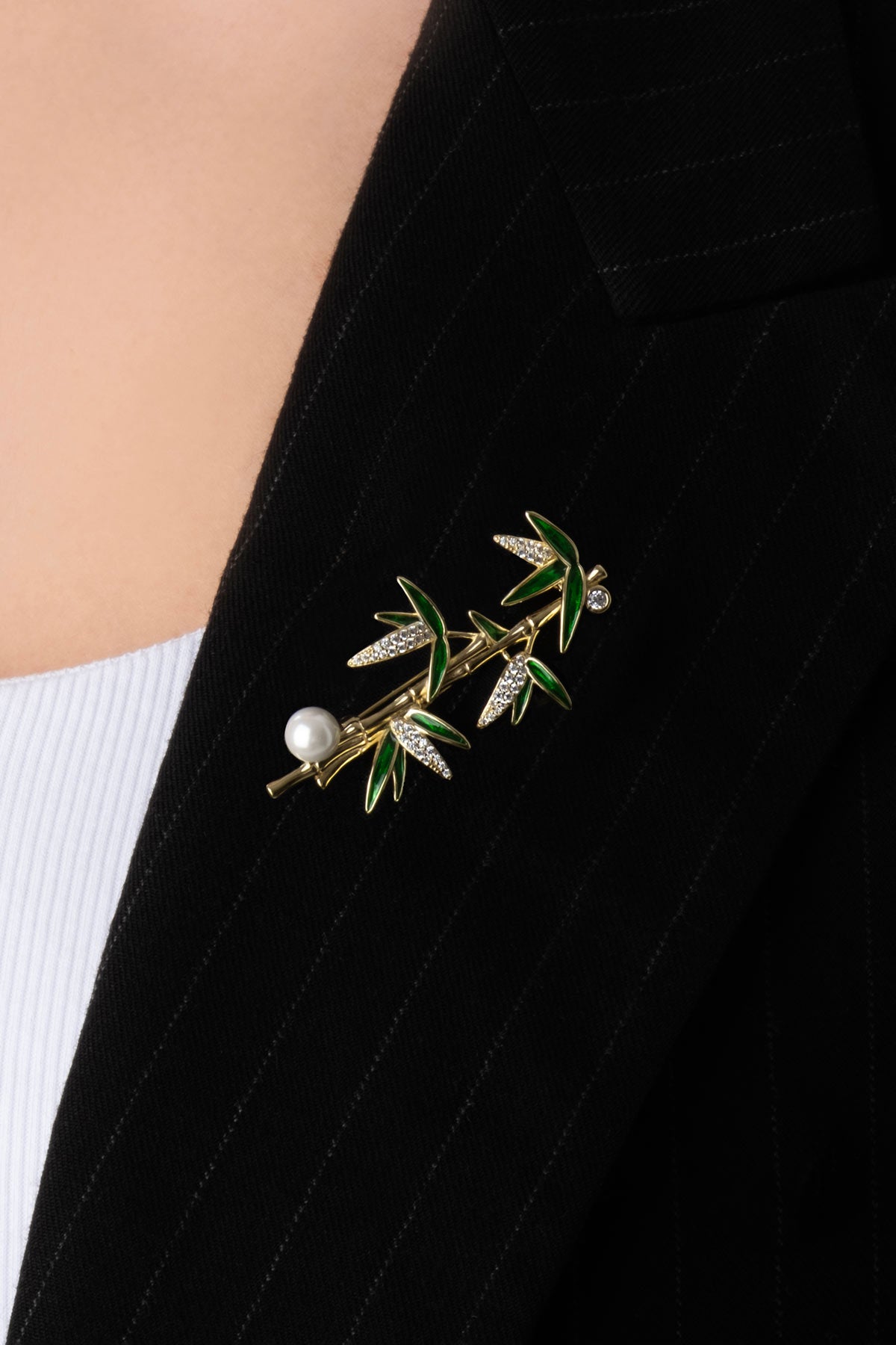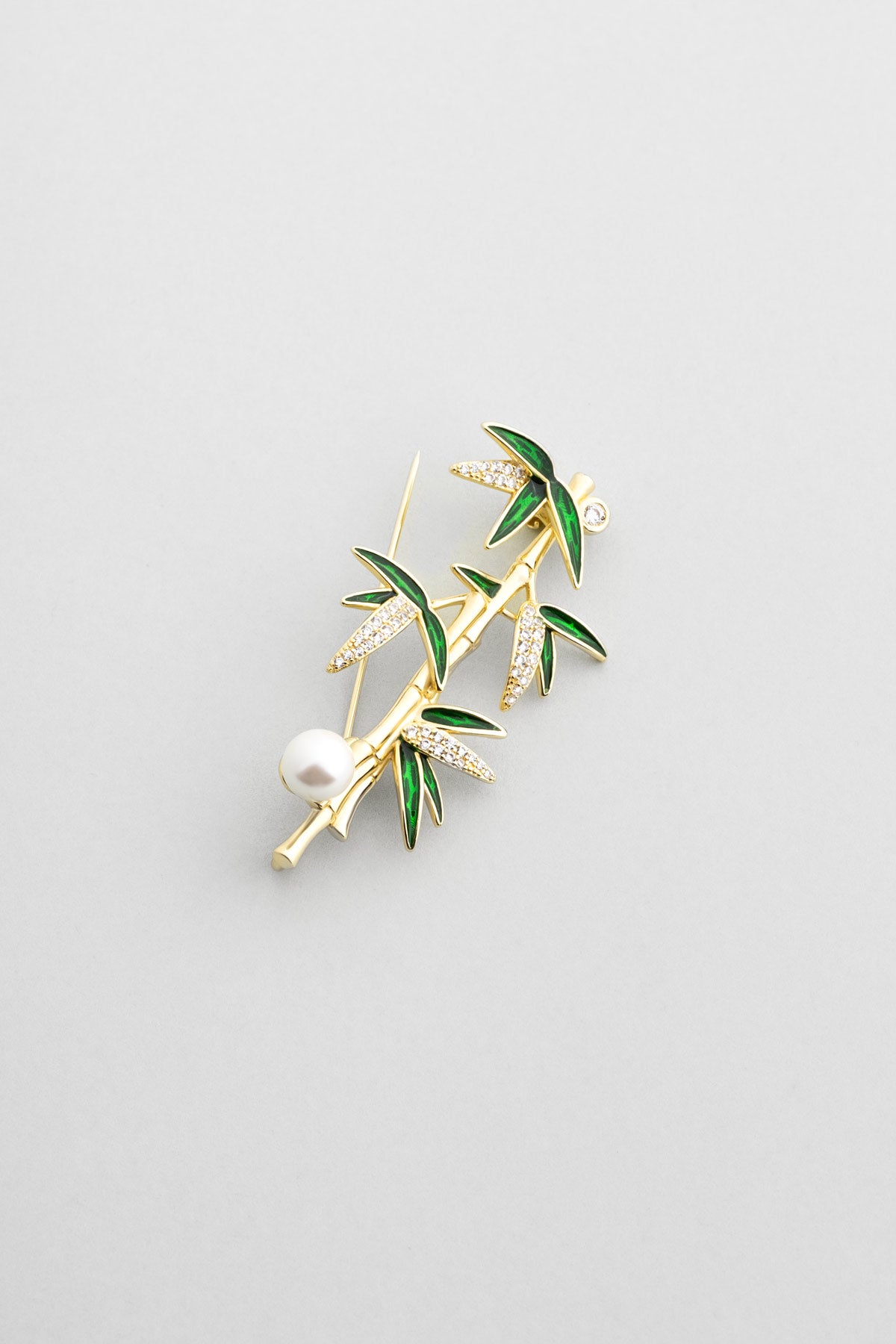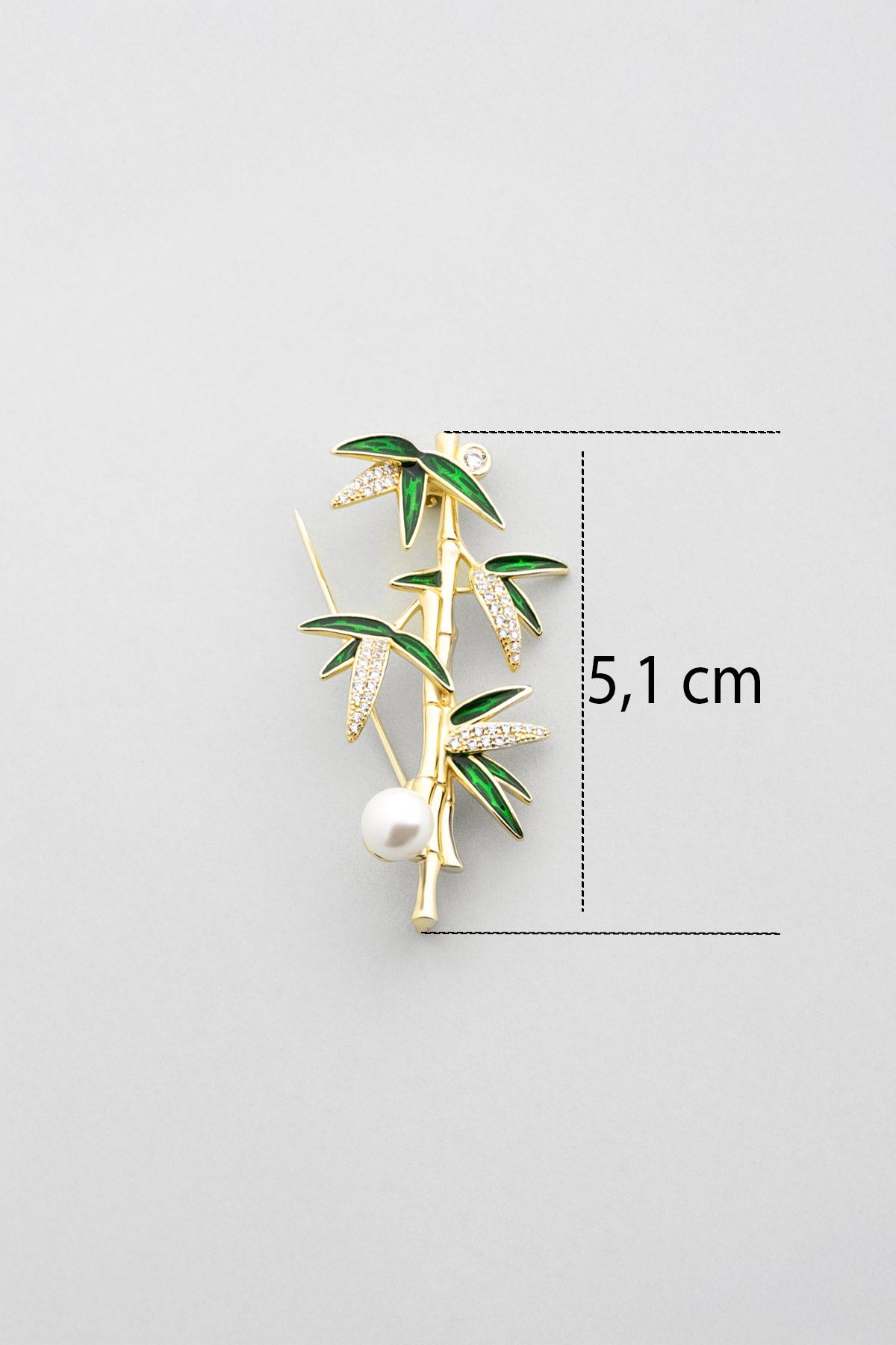 Şans Bambusu 18 Ayar Sarı Altın Kaplama Gümüş Broş 5175181344