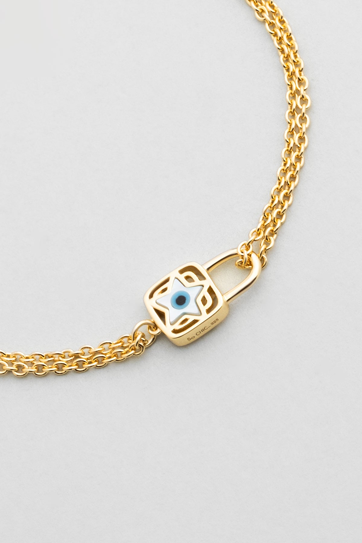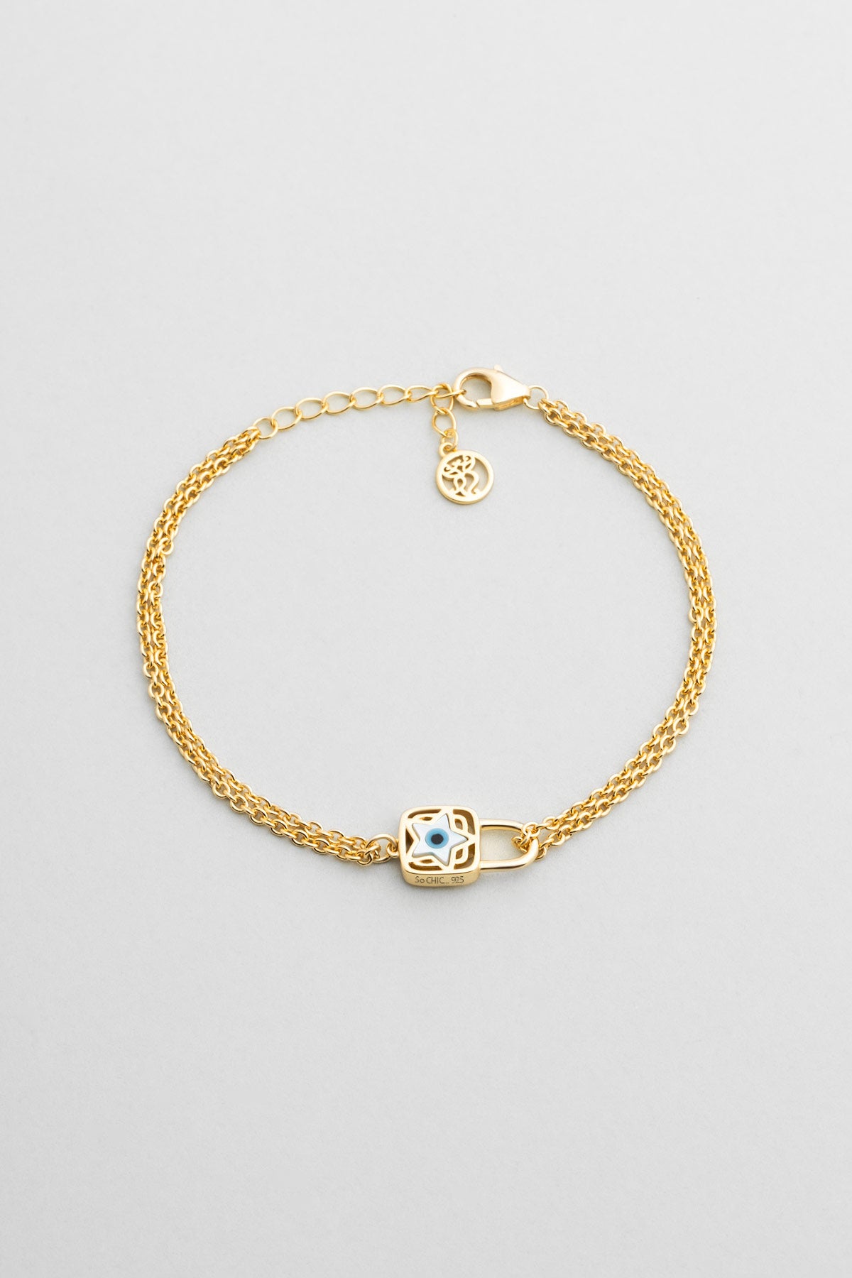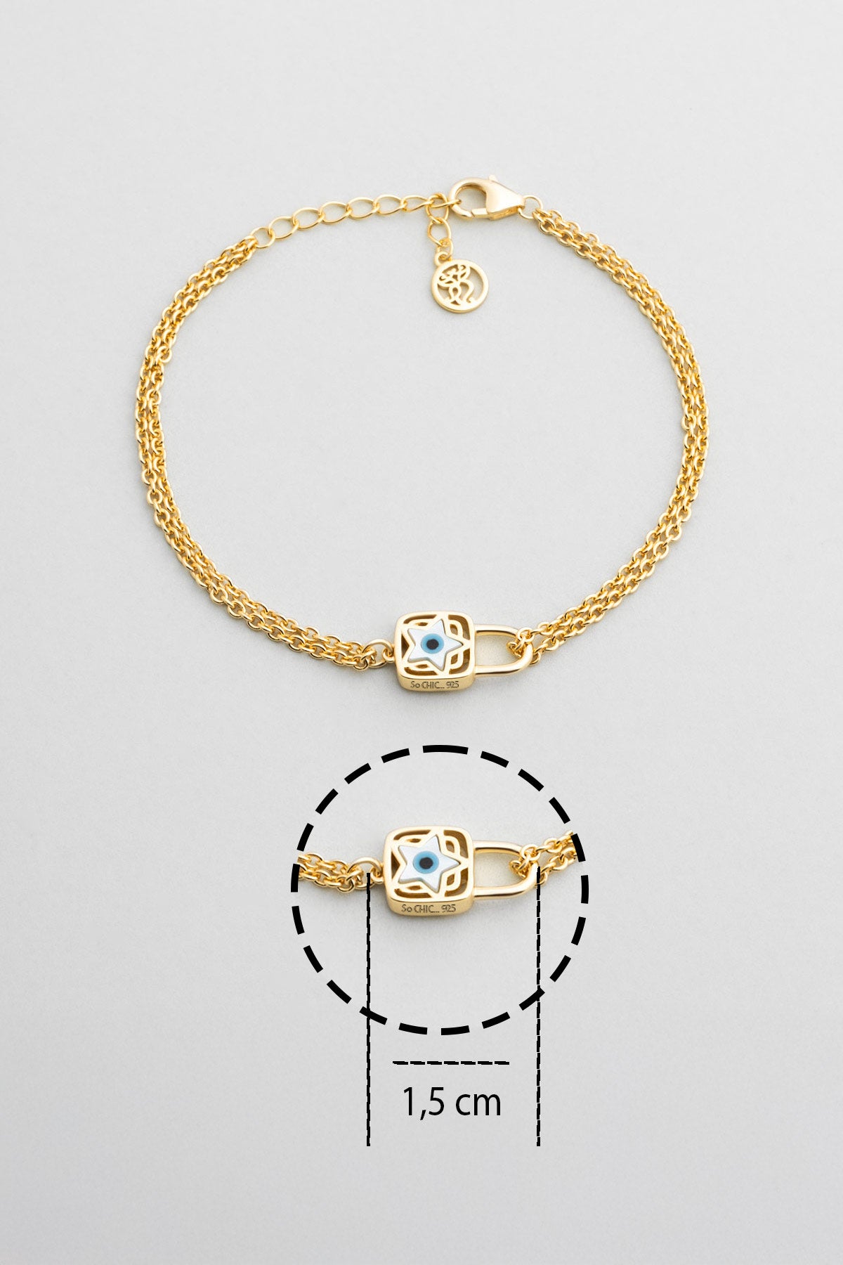 Şans Yıldızı 18 Ayar Sarı Altın Kaplama 19 Cm Gümüş Bileklik 5208760544