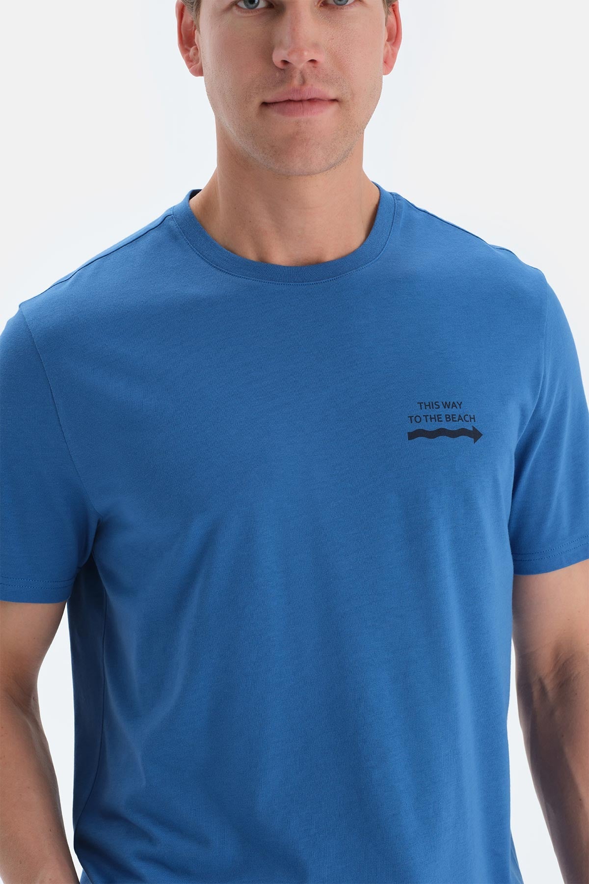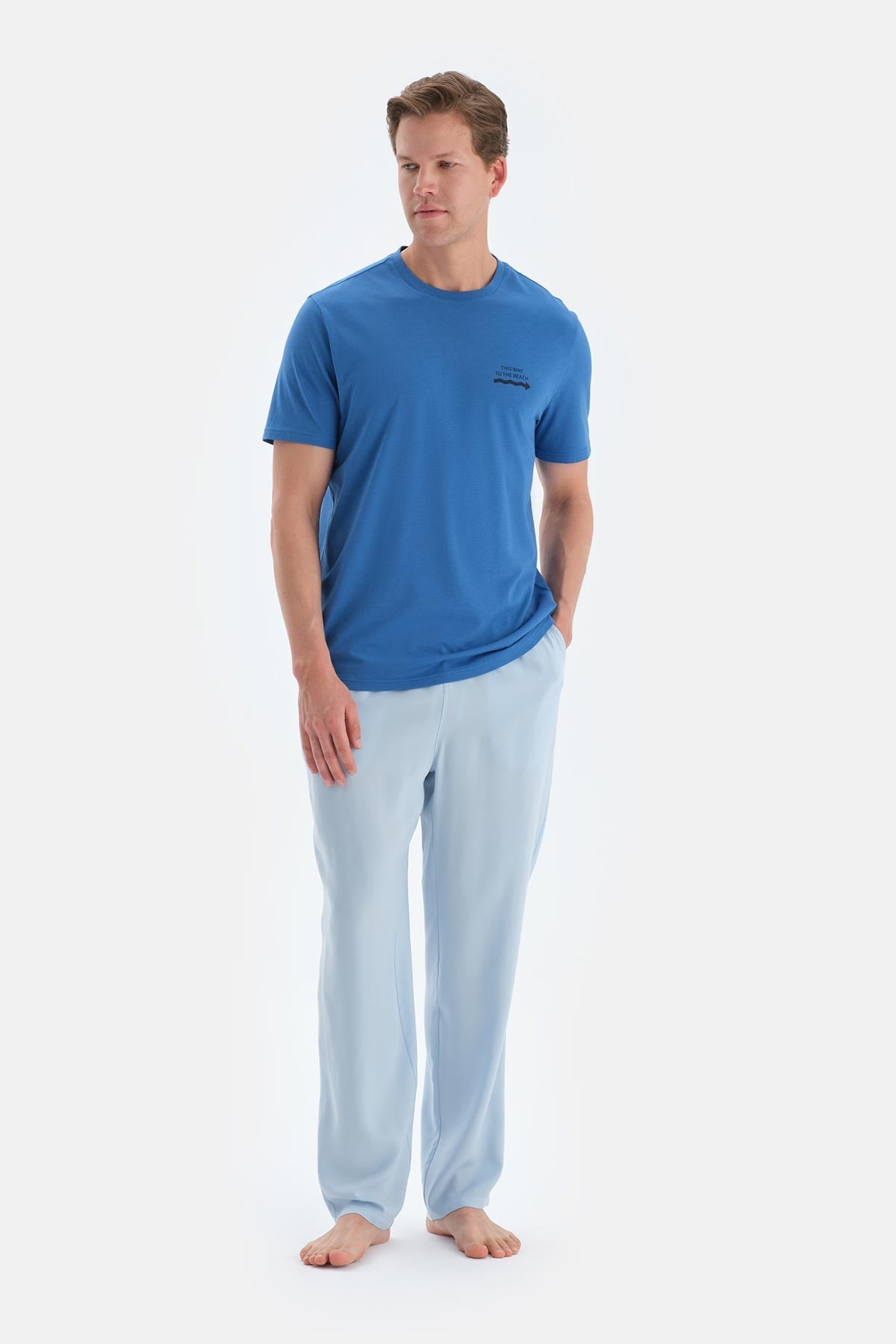 Sax Mavisi Baskı Detaylı Kısa Kollu Tişört Pantolon Pijama Takımı