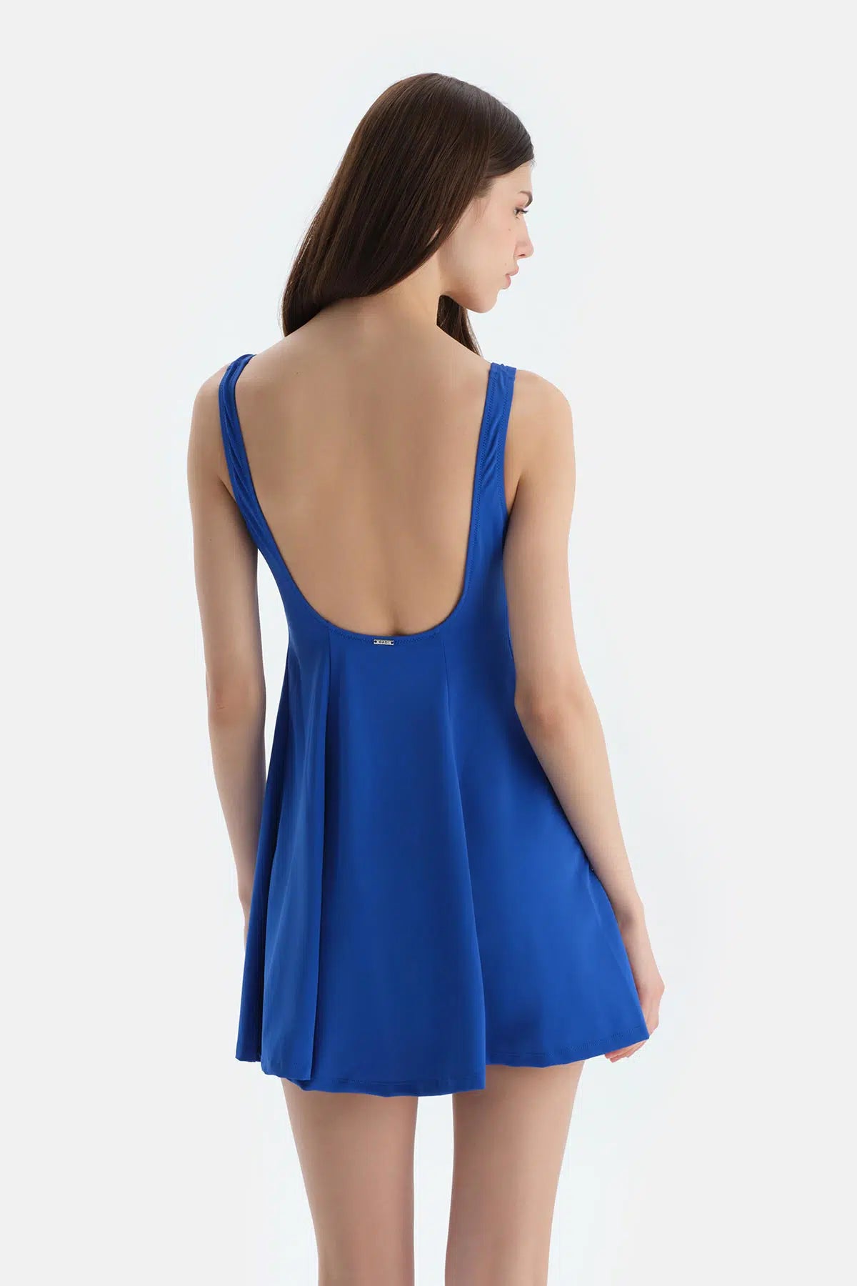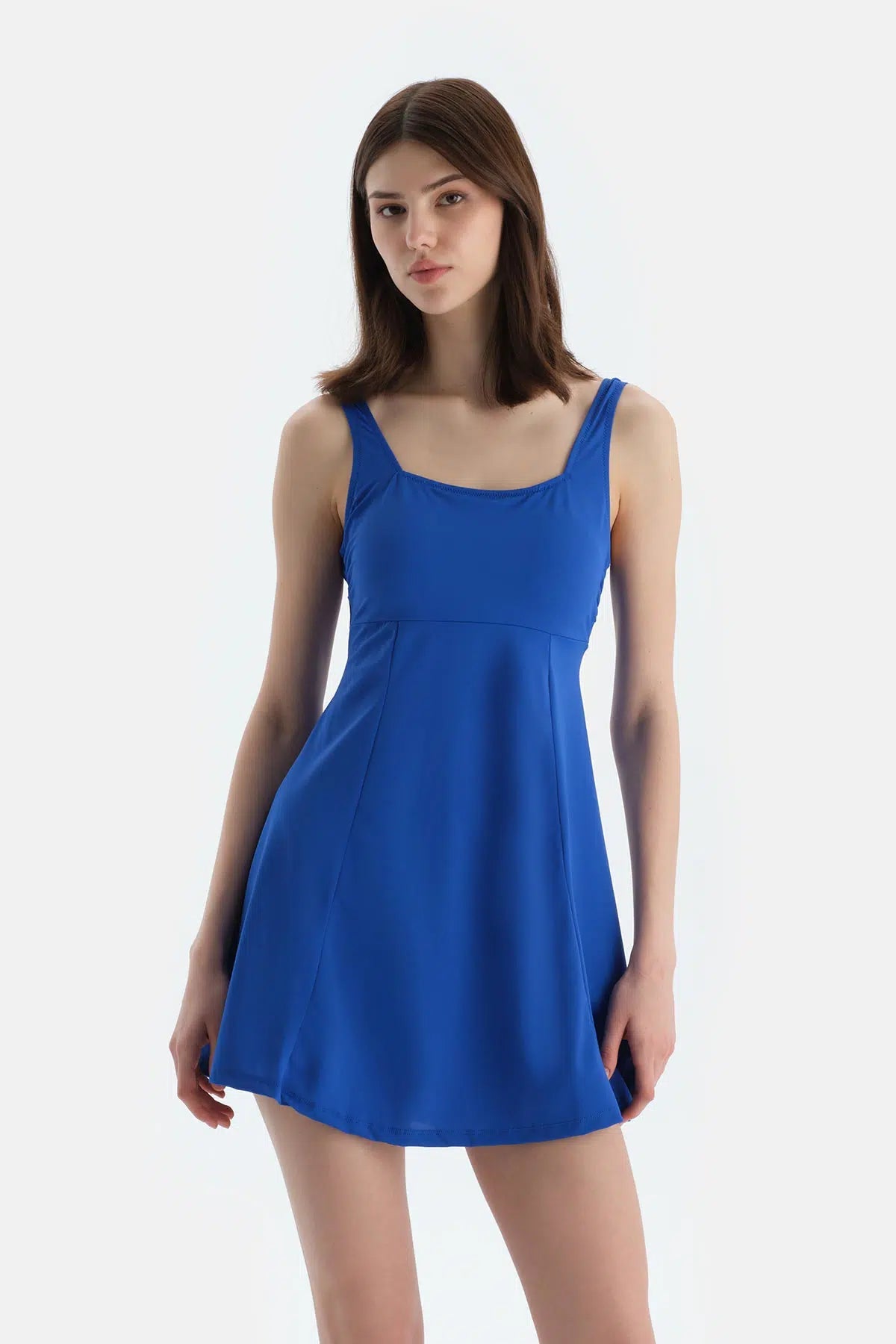 Sax Mavisi Kare Yaka Elbiseli Mayo