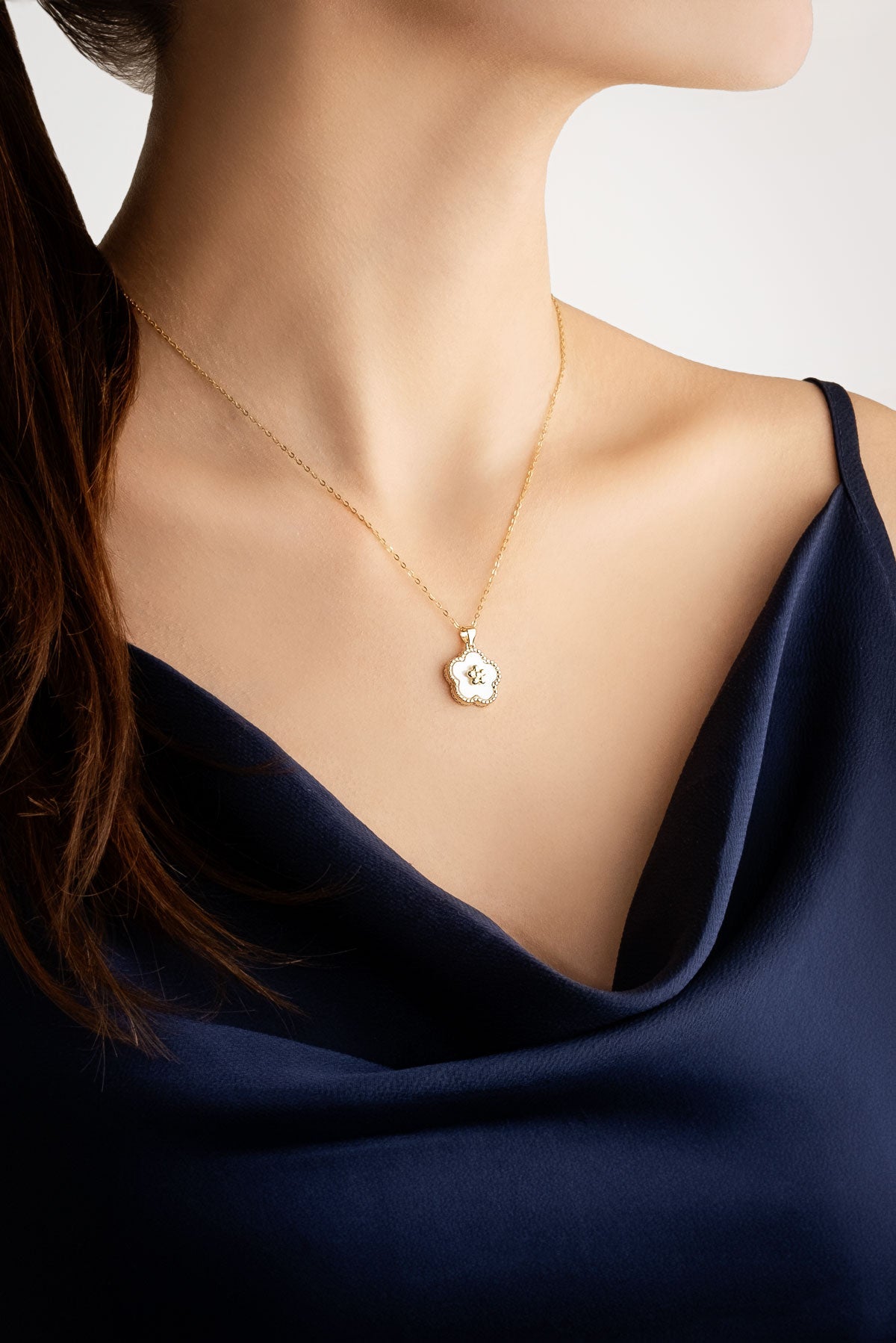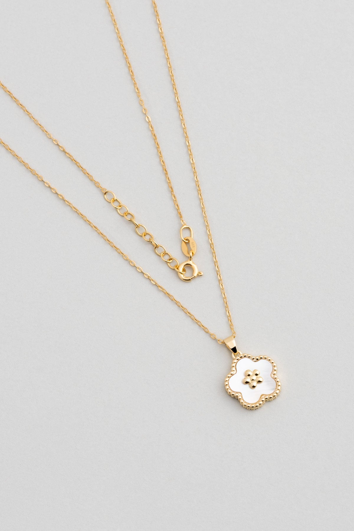 Sedef Çiçeği 18 Ayar Beyaz Altın Kaplama 43 Cm Gümüş Minimal Kolye 07299414644