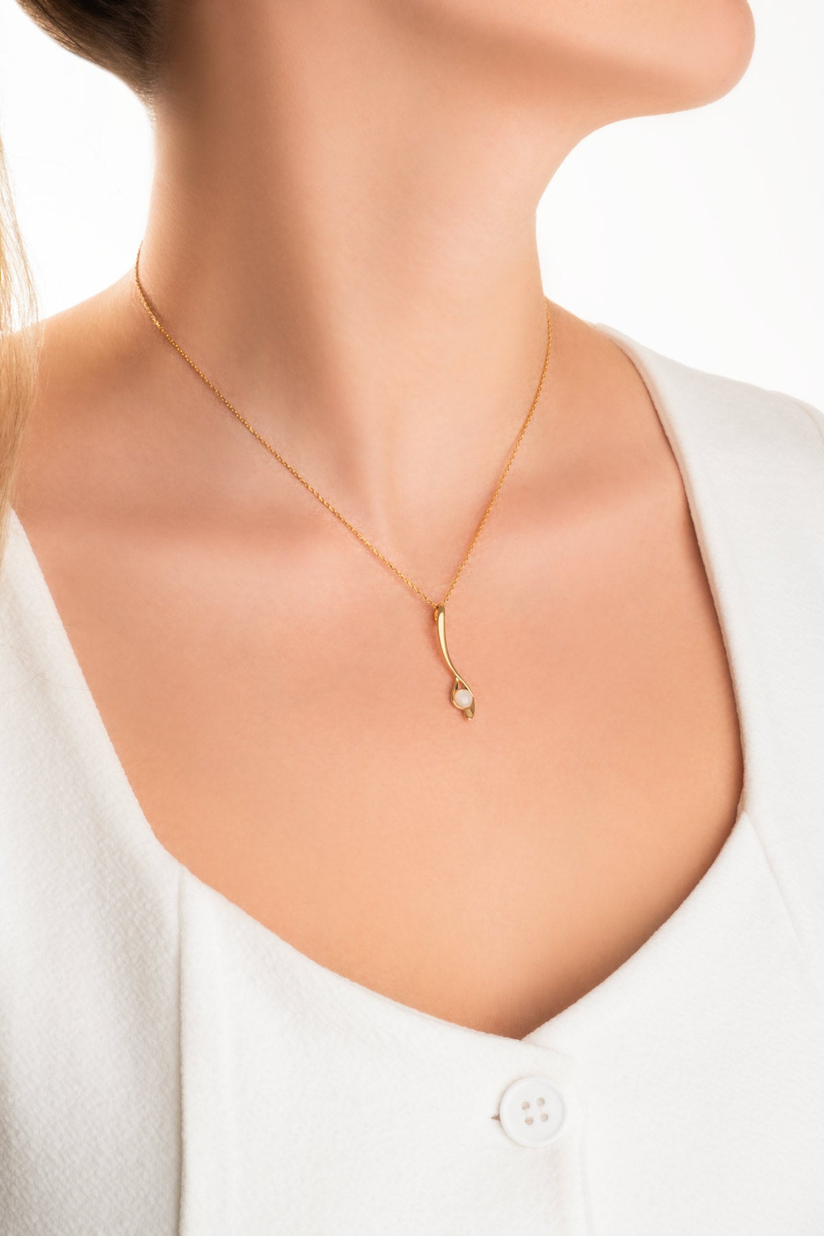 Sedef Melodisi 18 Ayar Sarı Altın Kaplama 42 Cm Gümüş Kolye 07314244644