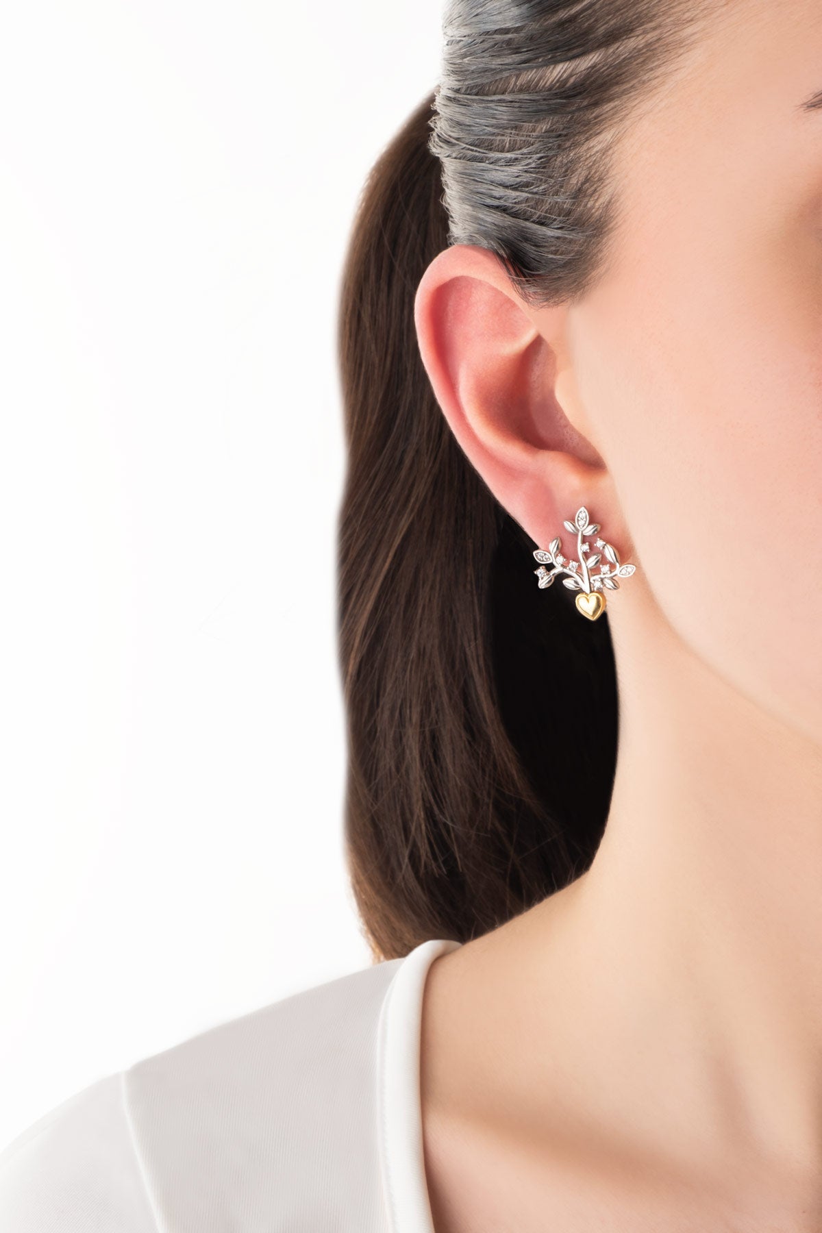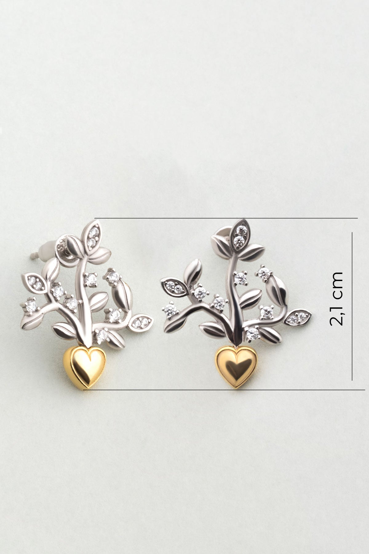 Sevgi Pusulası 18 Ayar Beyaz Ve Sarı Altın Kaplama Gümüş Küpe 07313090199