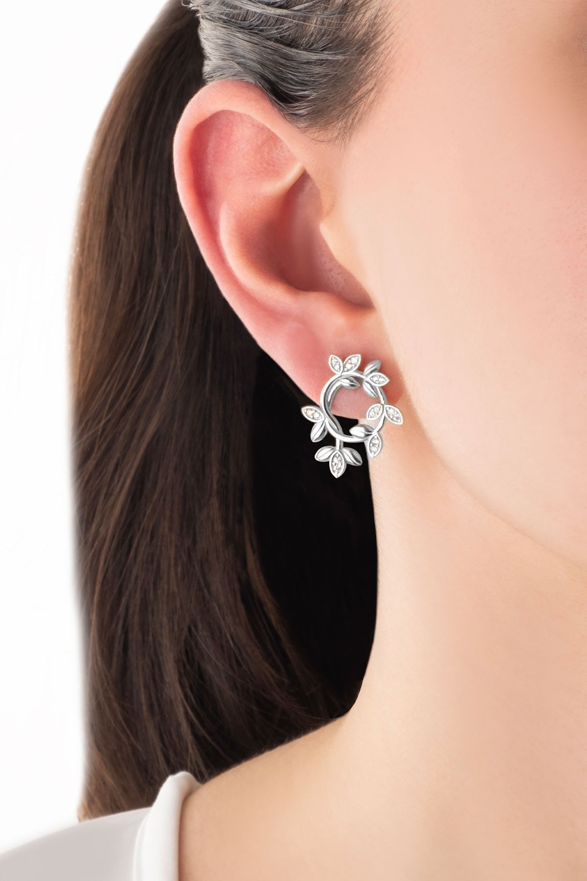 Sevgi Sarmaşığı 18 Ayar Beyaz Altın Kaplama Gümüş Küpe 07313040199